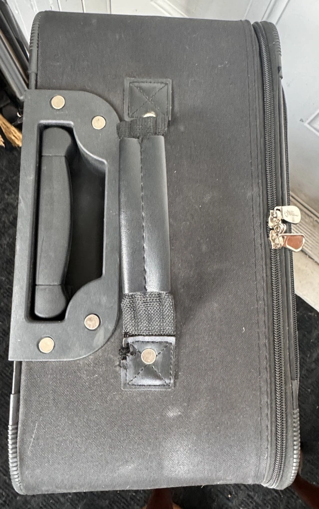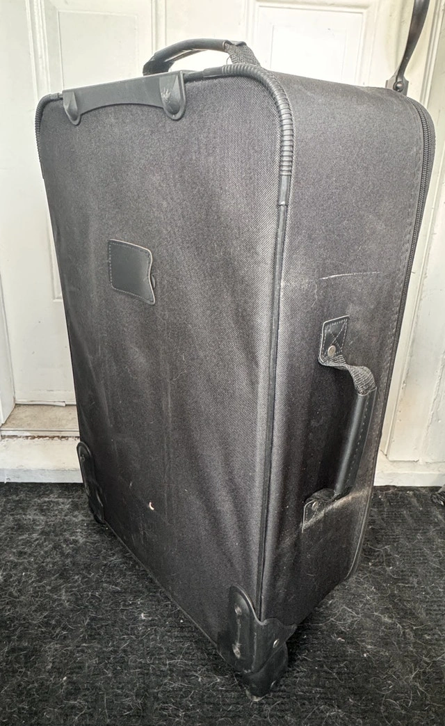 Size: 25 by 16 by 8 inches. This is a black rolling suitcase, perfect for travel. It is in used condition but has lots of life left for many adventures! It features a retractable handle and multiple compartments to keep your belongings organized. * Retractable handle * Multiple compartments * Durable wheels Ready to roll into your next journey? Similar suitcases are listed for around $40-$80, so I've priced it fairly. If you're seeing this ad, the suitcase is still available!