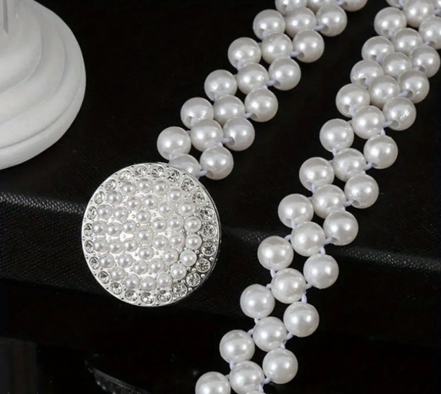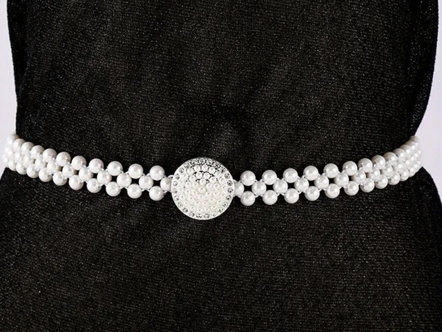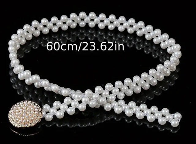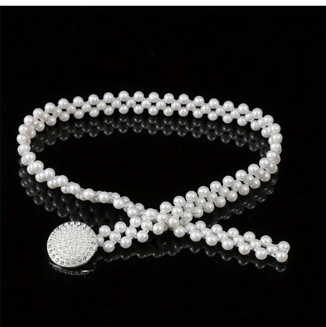 New Artifical Pearl Belt,Rhinestones Buckle Dress Elastic Waist