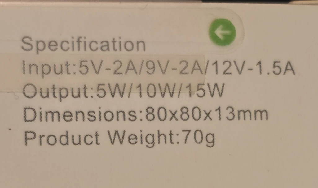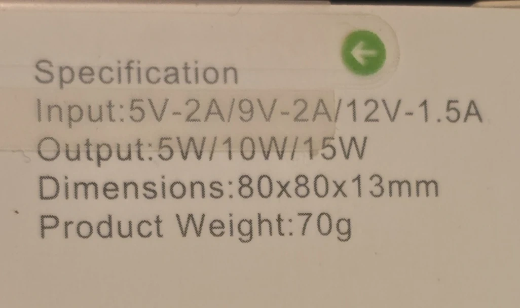 - Input: 5V-2A/9V-2A/12V-1.5A