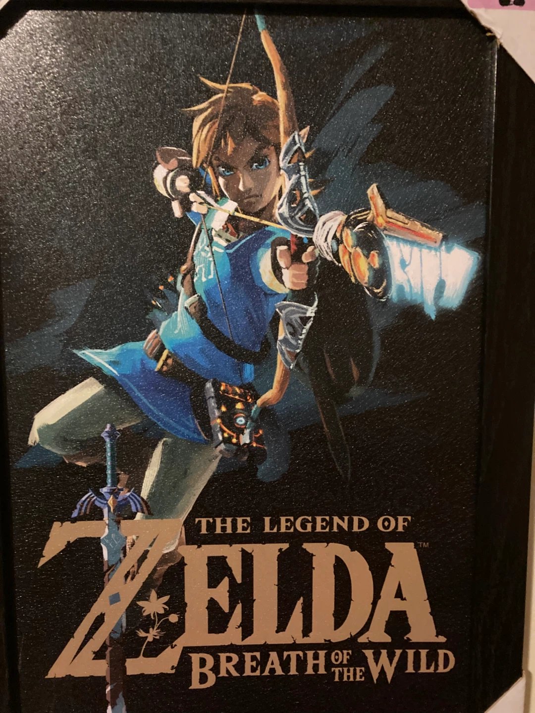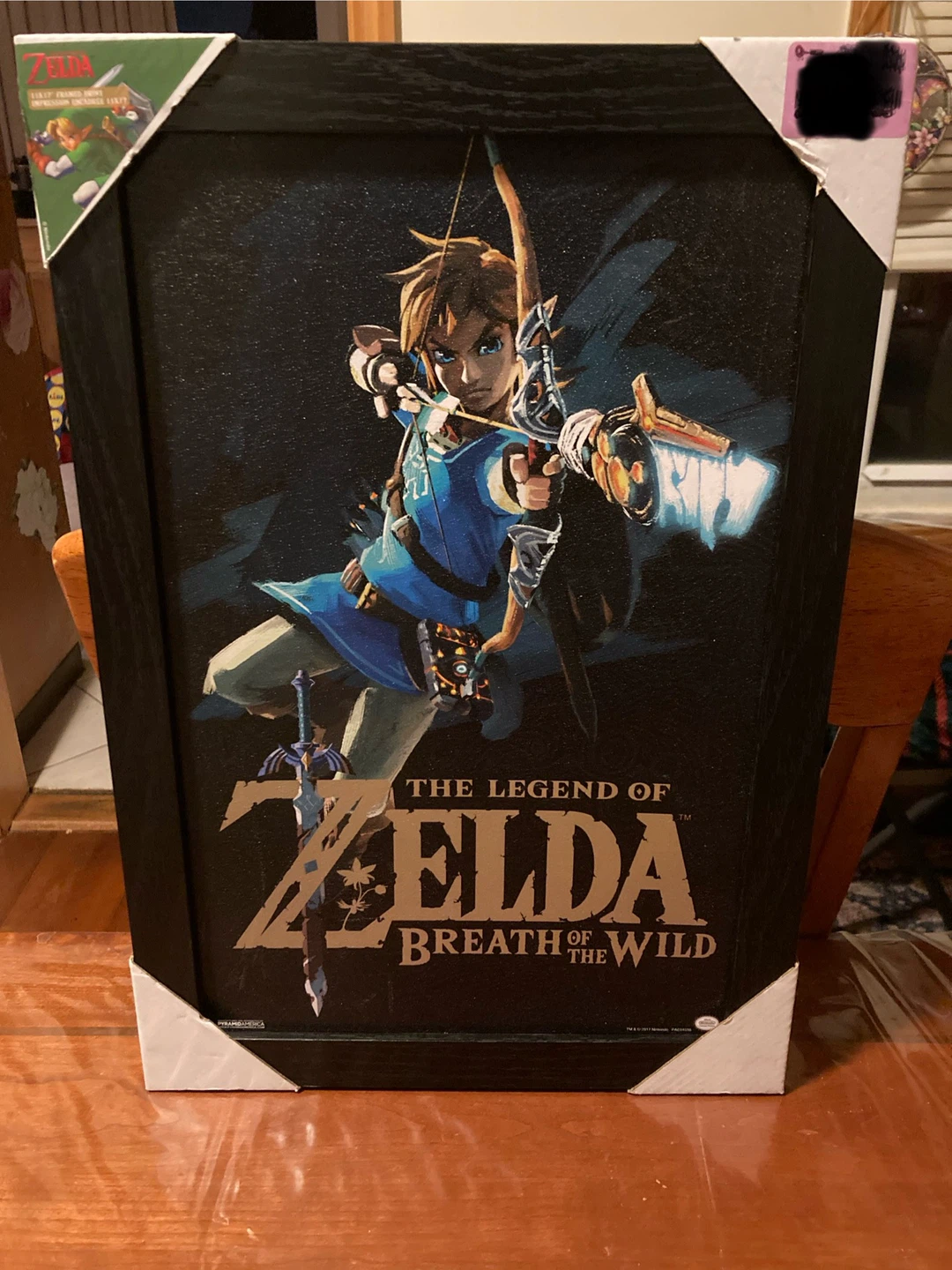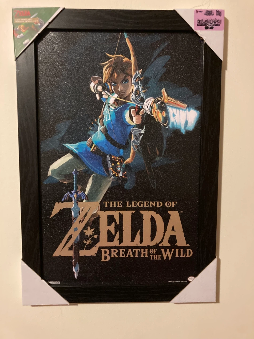 Selling a framed print of The Legend of Zelda: Breath of the Wild. The print is in great condition and ready to hang up in your home!