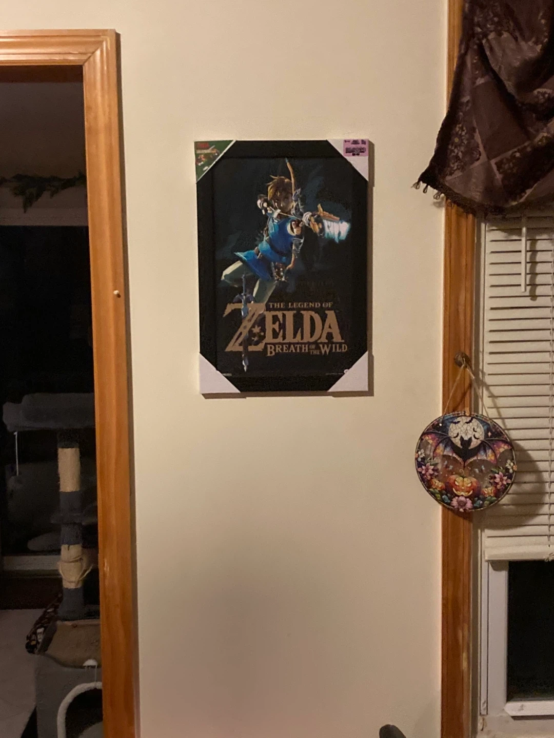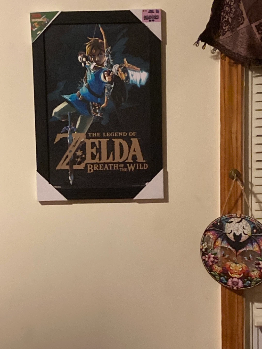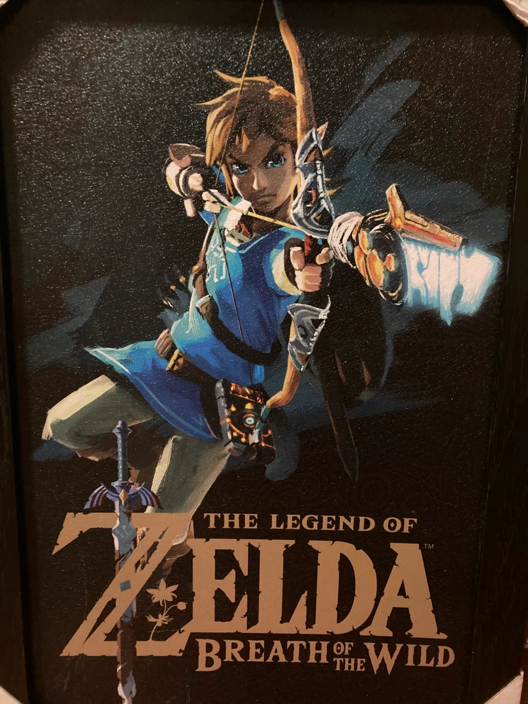 Selling a framed print of The Legend of Zelda: Breath of the Wild. The print is in great condition and ready to hang up in your home!