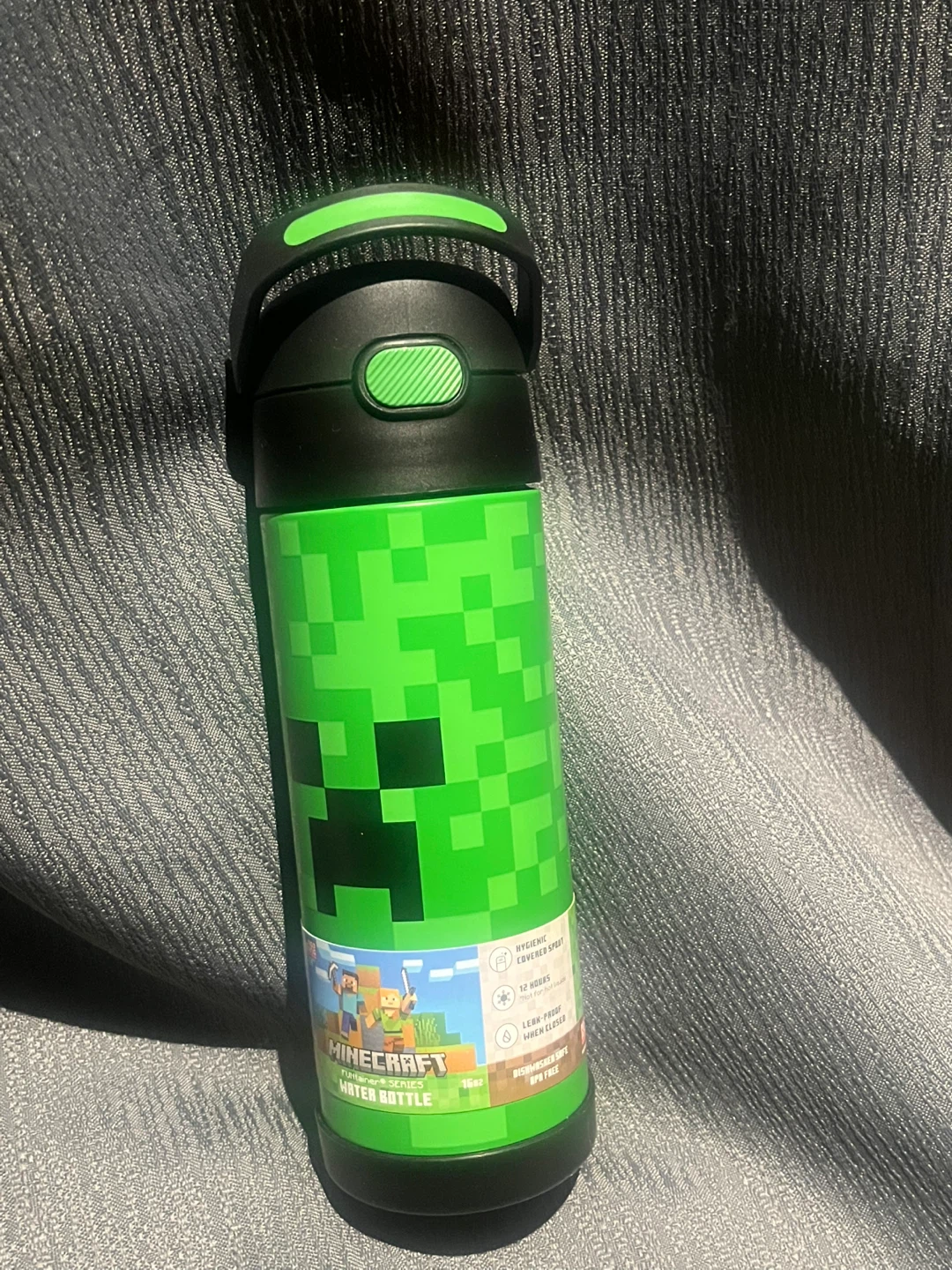Keep your little one hydrated with this Minecraft water bottle! It features a fun Creeper design and holds 470ml. It has a hygienic cover and is BPA free