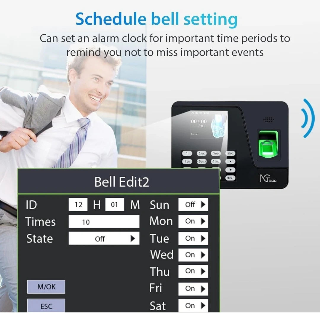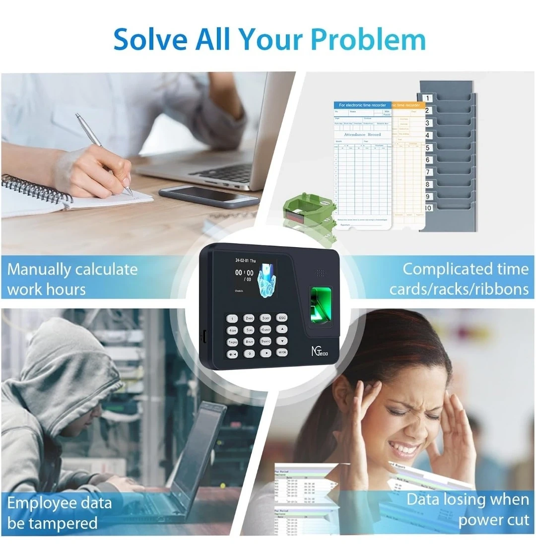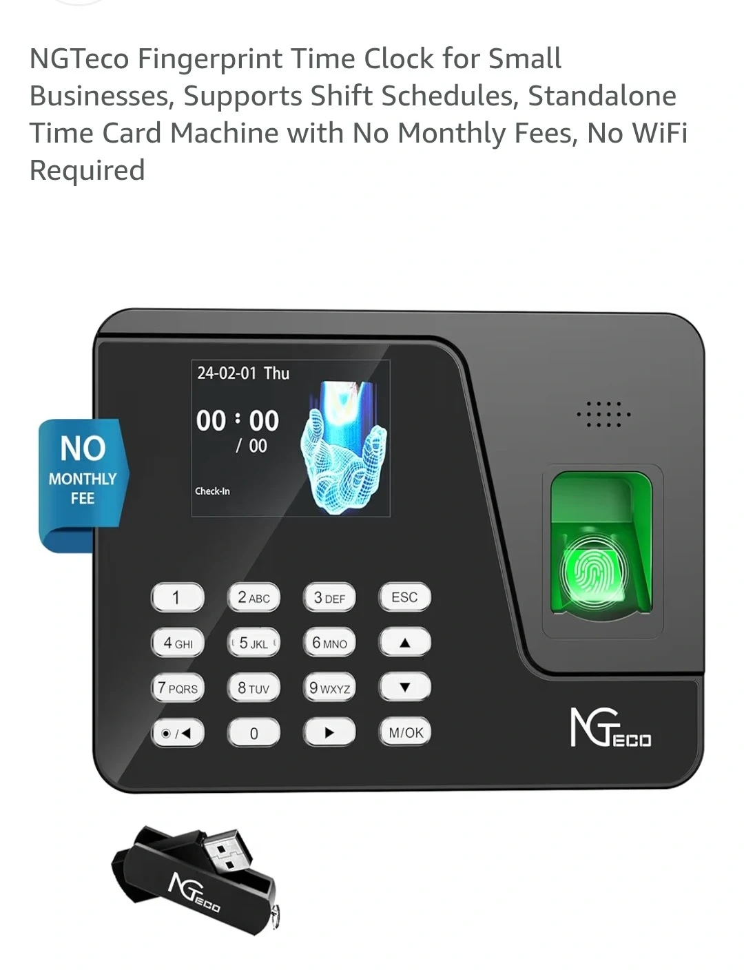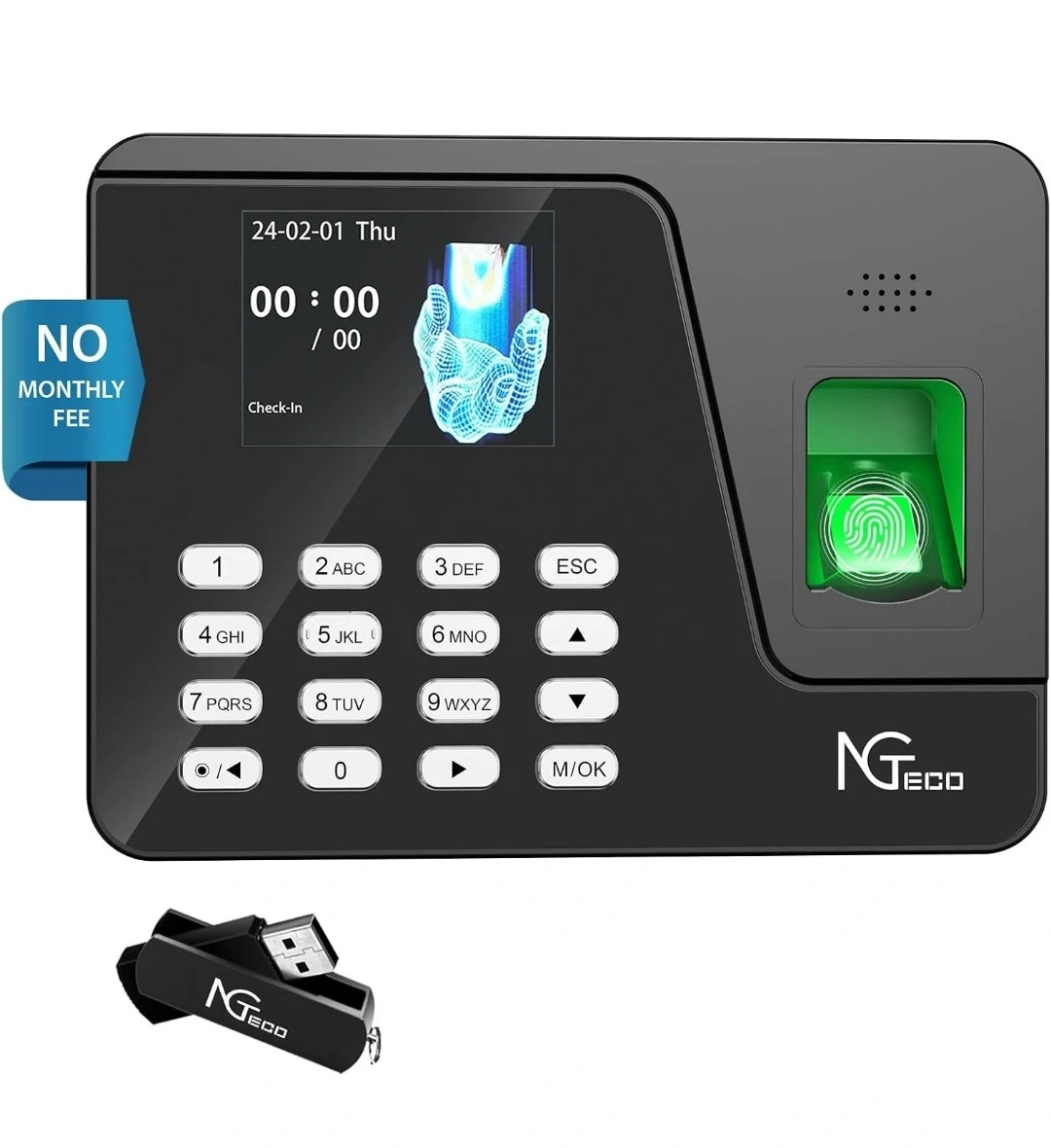 NGTeco Fingerprint Time Clock for Small Businesses, Supports Shift Schedules, Standalone Time Card Machine with No Monthly Fees, No WiFi Required