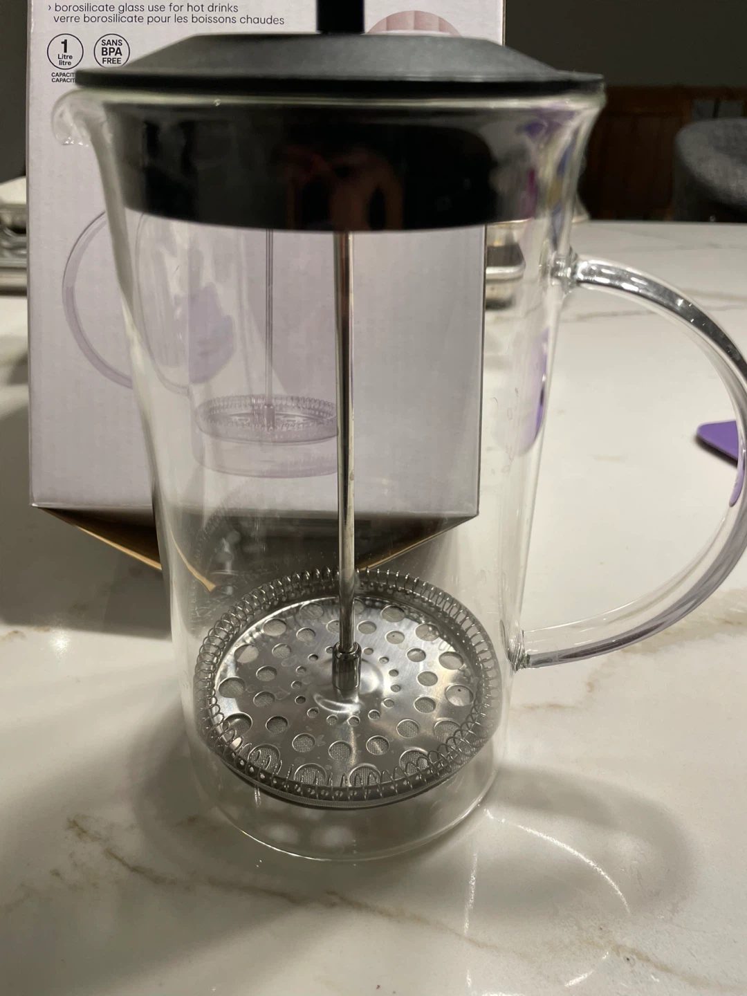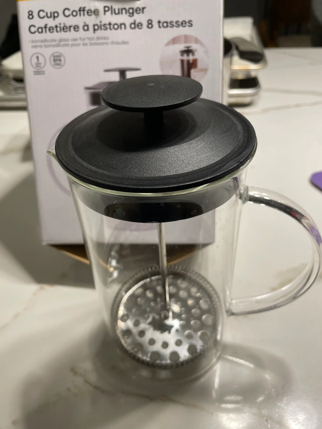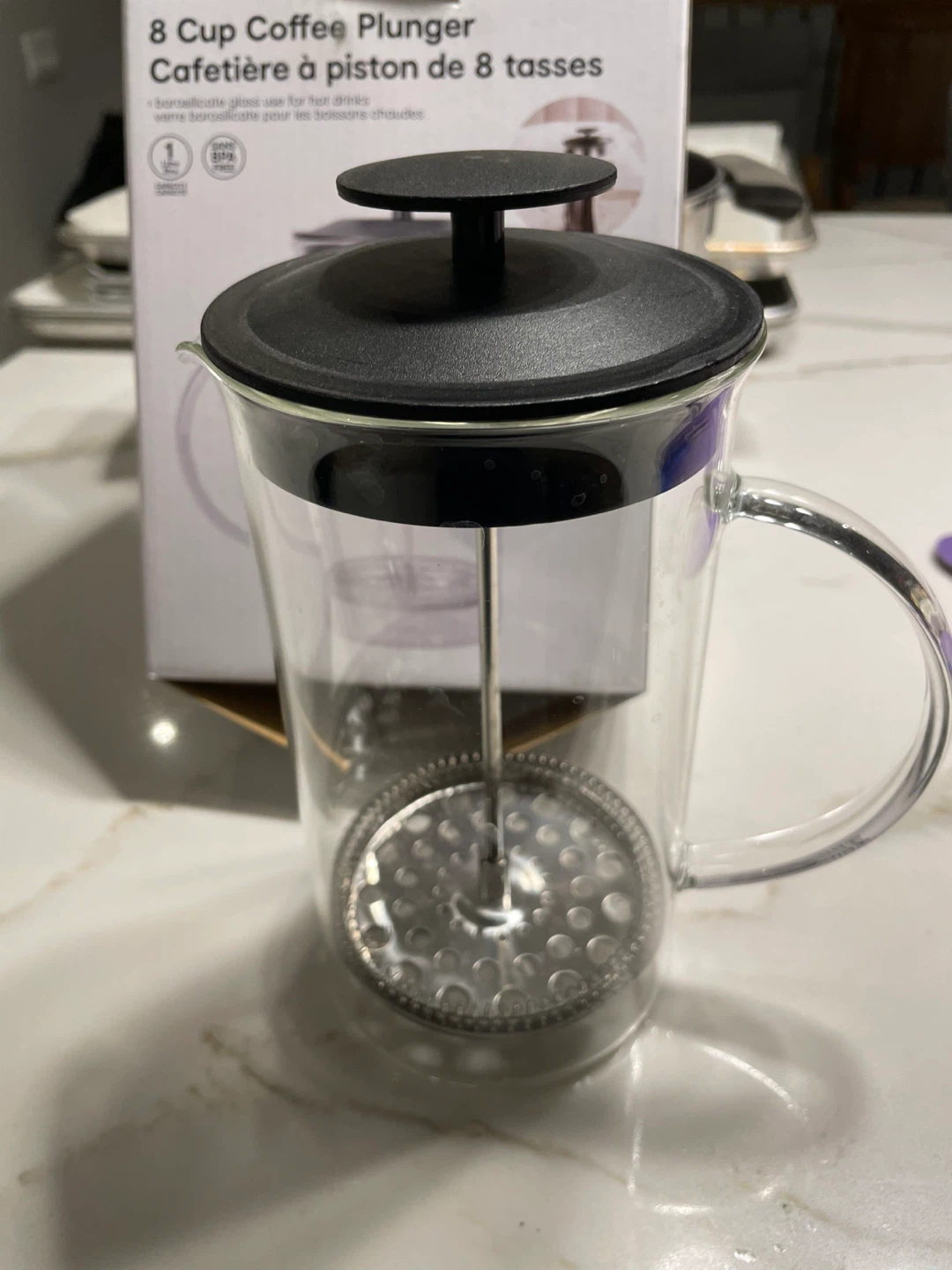 Brand new : I'm selling an 8-cup coffee plunger. It's made of borosilicate glass, safe for hot drinks, and BPA-free. It's perfect for brewing your favourite coffee at home!