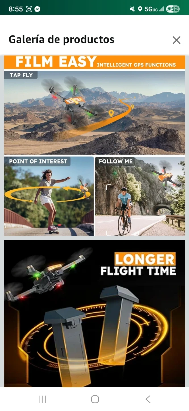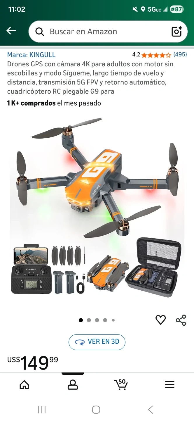dron KINGULL G9 con una cámara 4K. Tiene GPS y funciones inteligentes para un vuelo seguro. Tiene un largo tiempo de vuelo y características como "Sígueme" y "Punto de interés". También tiene un retorno con un solo clic para facilitar el aterrizaje.