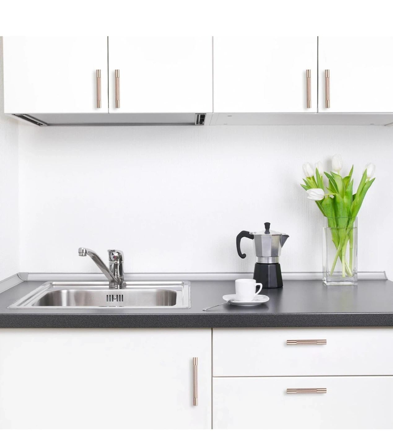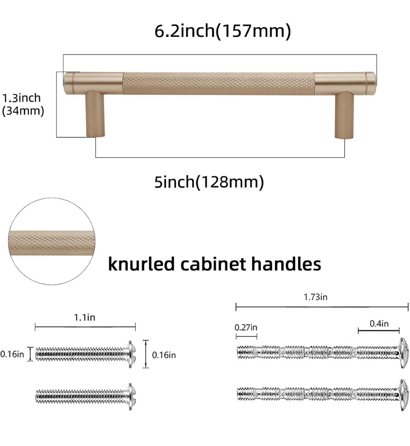 These brand-new 5 inch (128mm) Champagne Bronze Kitchen Cabinet Handles come in a pack of six, perfect for updating your kitchen or bathroom cabinets! The elegant champagne bronze finish adds a touch of sophistication to any decor. These handles have a knurled design and are made from durable materials.