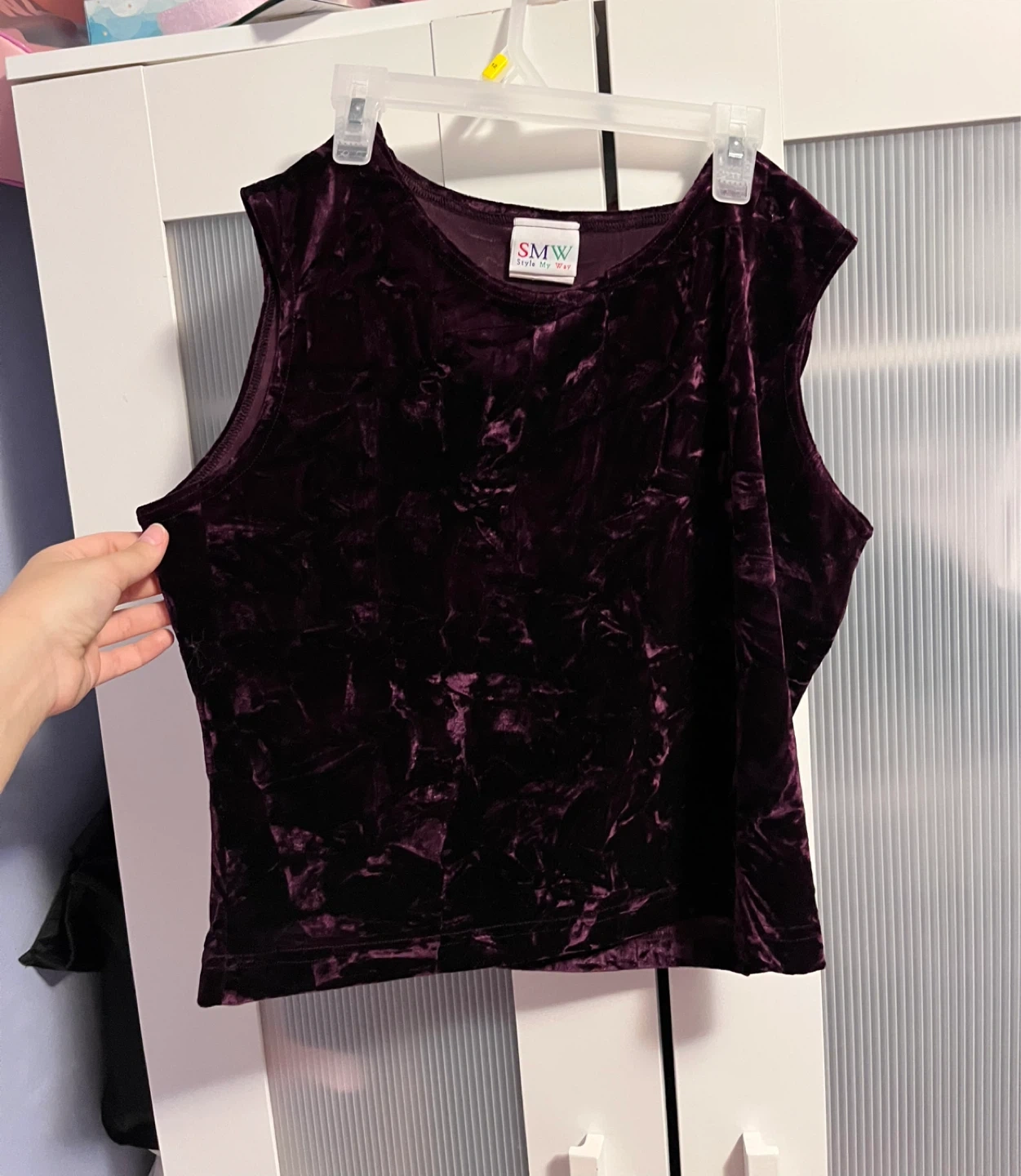*The skirt is the same color as the top, the light hits it differently* Selling a cute velvet top and skirt set from SMW (Style My Way)! The top is a deep plum colour, and the skirt is well