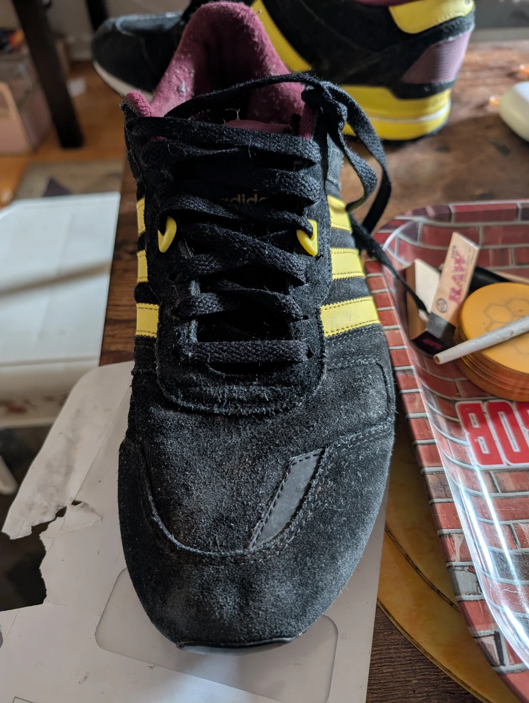 1 / 31 / 3Buy & SellAdidas ZX 700Adidas ZX 700$80This is a pair of size 11 Adidas ZX 700 sneakers in black with yellow stripes and maroon accents. ConditionGoodSize11BrandAdidas WHERE TO MEETmy placeView MapSELLERDesmondCooksville534 reviews0 chats·0 favorites·15 viewsSEND CHAT TO SELLERHi Desmond! I’m interested in your listing.Hi Desmond! I’m interested in your listing.Get the Karrot app to chatSign In to chat
