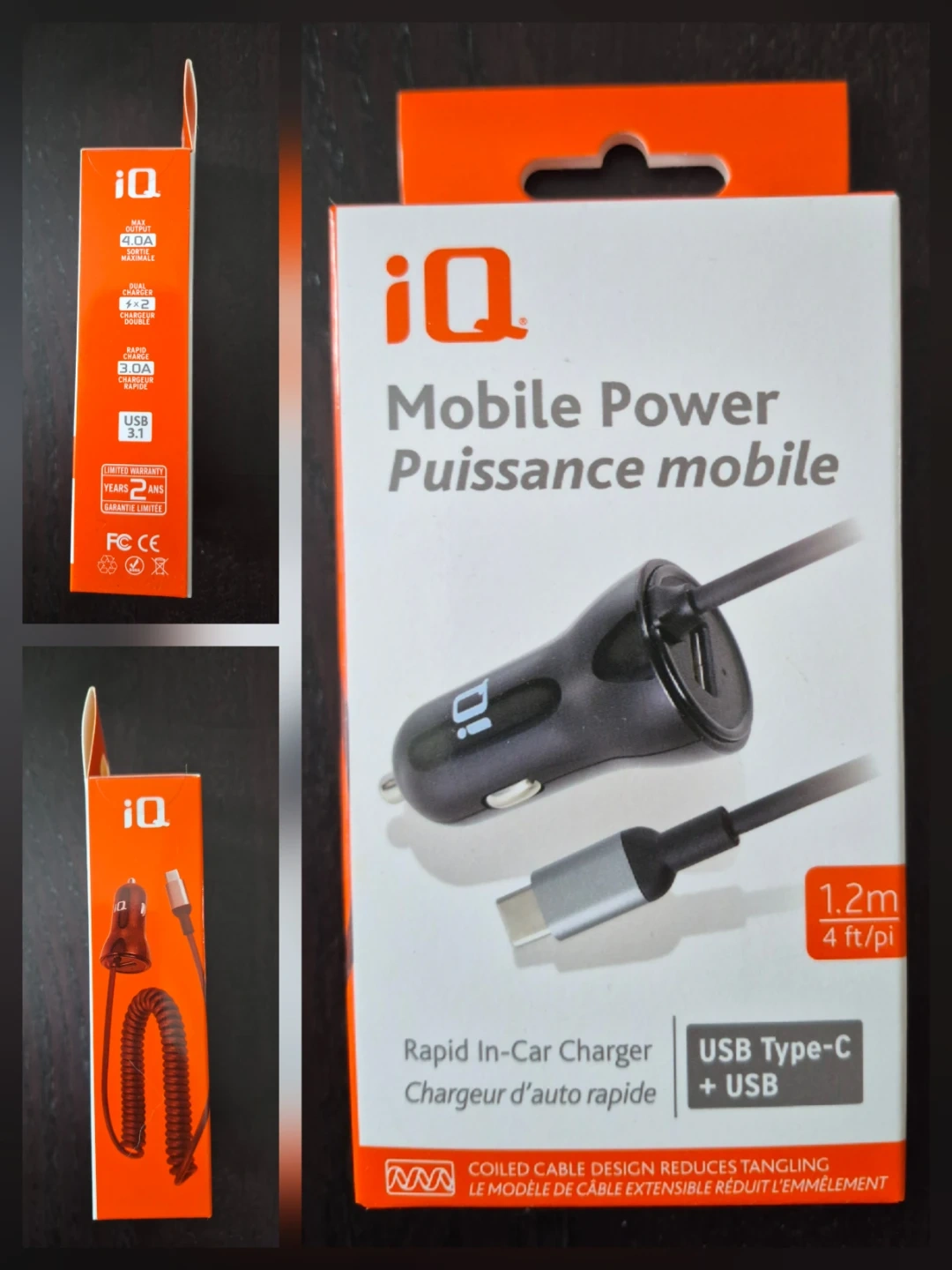 New in sealed package iQ Mobile Power Rapid In- Car Charger with USB Type- C & USB ports. Pick up in Kitchener, $20