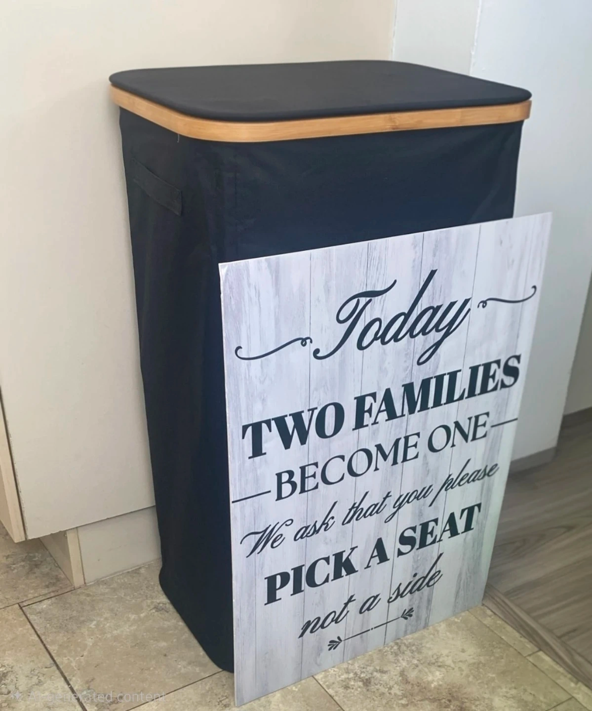 Selling a wedding decor sign that reads: "Today TWO FAMILIES BECOME ONE - We ask that you please PICK A SEAT not a side". Perfect for adding a warm touch to your special day