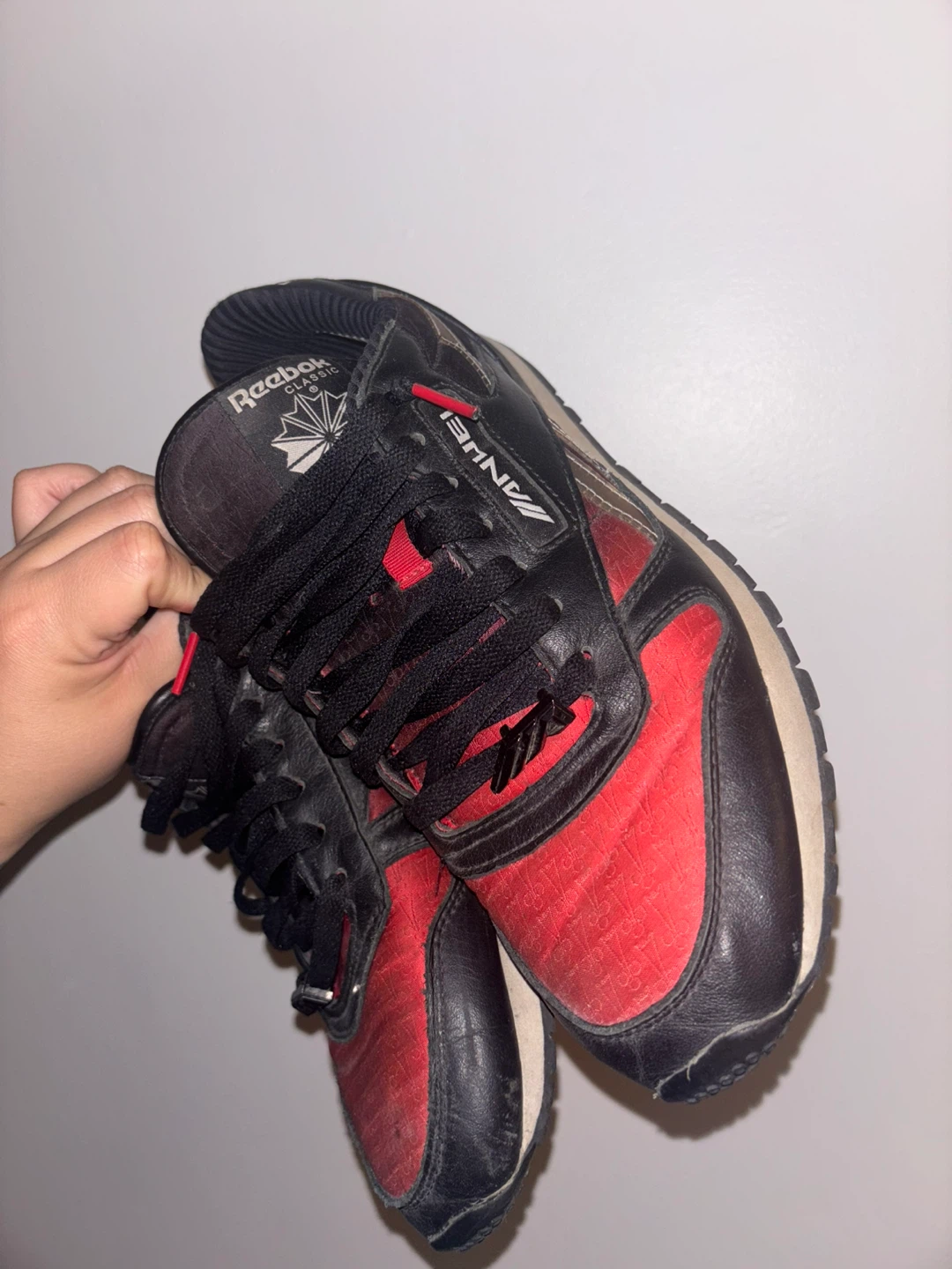 Selling a pair of Reebok Classic sneakers in red and black. They show some signs of wear but still have lots of life left in them! Perfect for casual wear or hitting the gym
