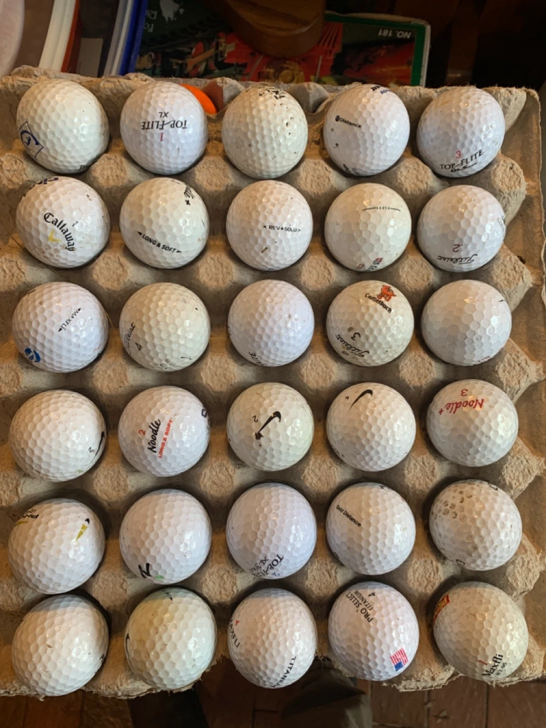 Selling a collection of mixed golf balls! You'll find a variety of brands including Callaway, Titleist, Top Flite, Noodle, and Maxfli. Great for practice or a casual round of golf!