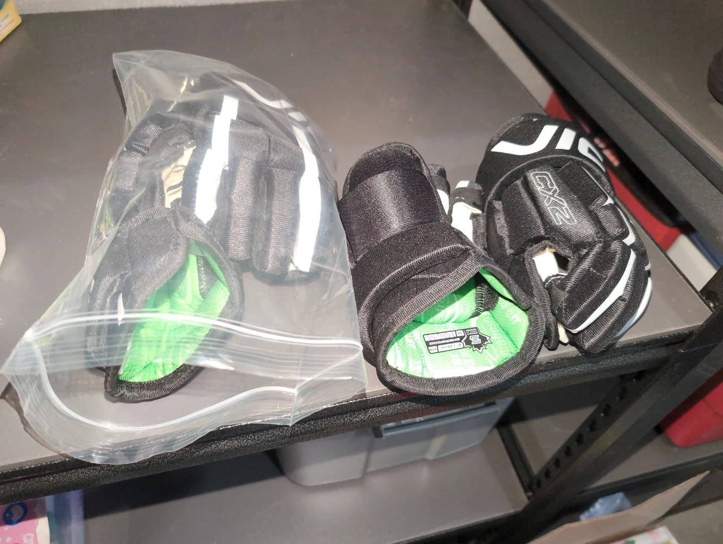 Selling 2 pairs of YTH VIC CX2 hockey gloves in black and white. They were used only one time so they look brand new and ready for the ice!