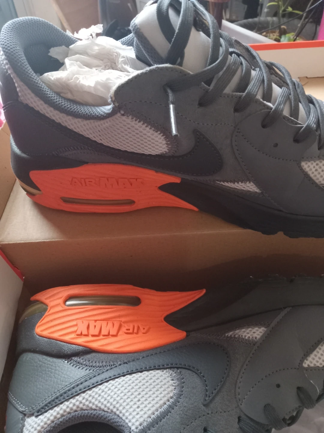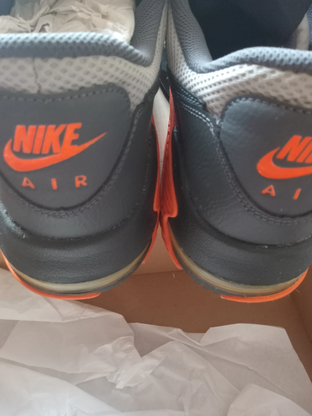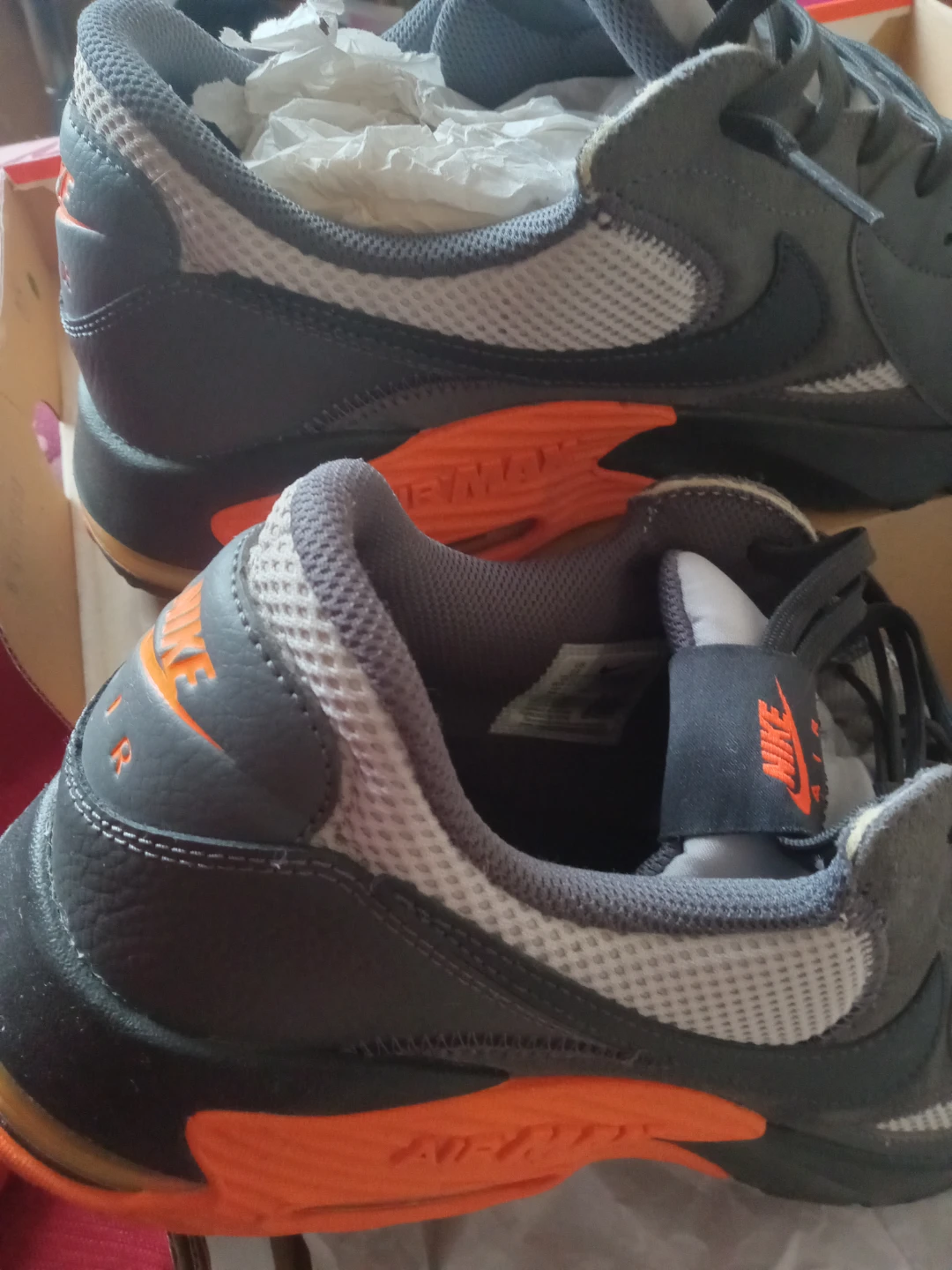 Selling a pair of Nike Air Max sneakers in grey and orange. They come with the original box, size 13