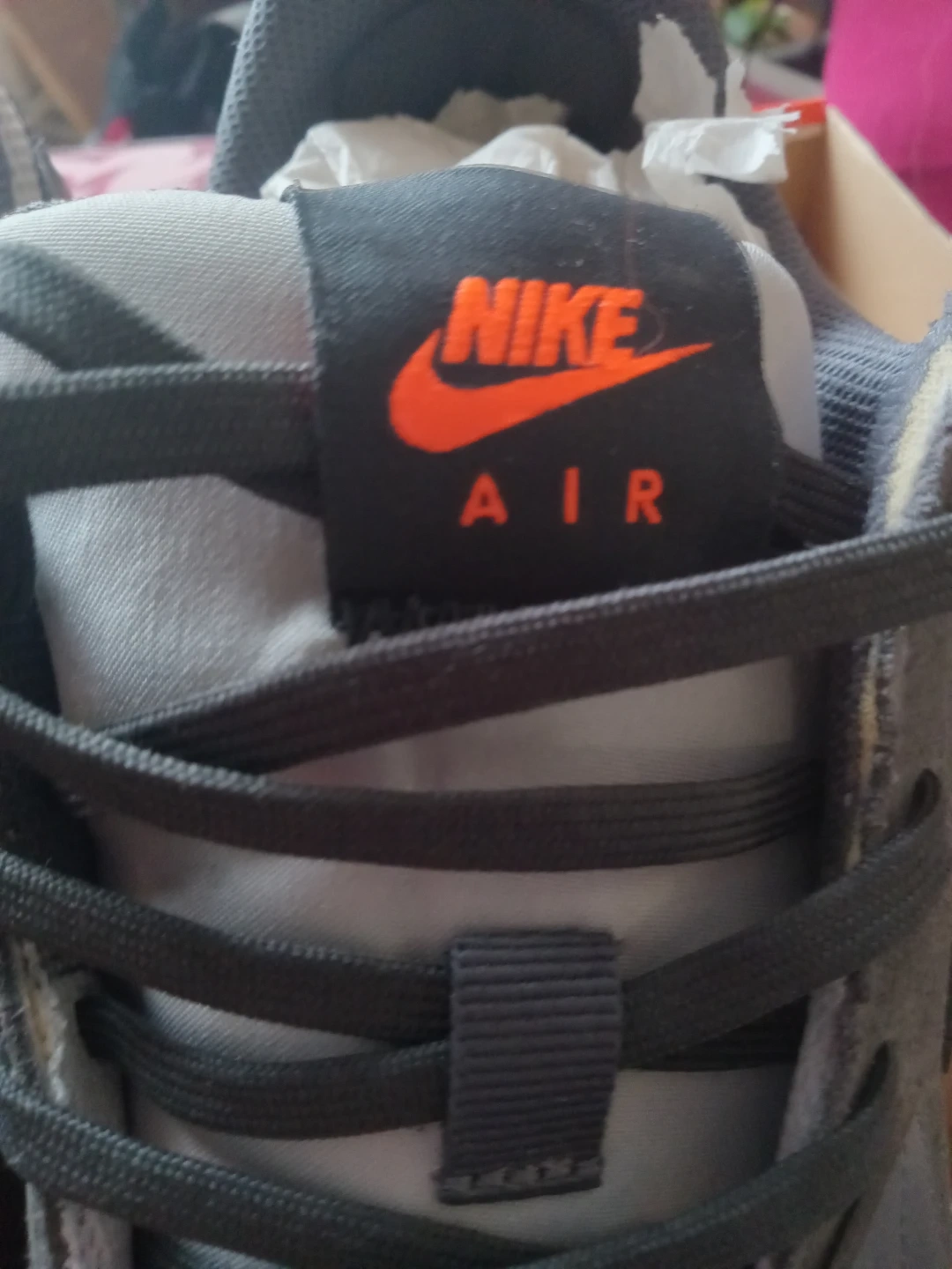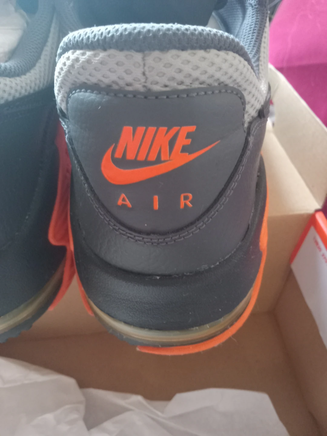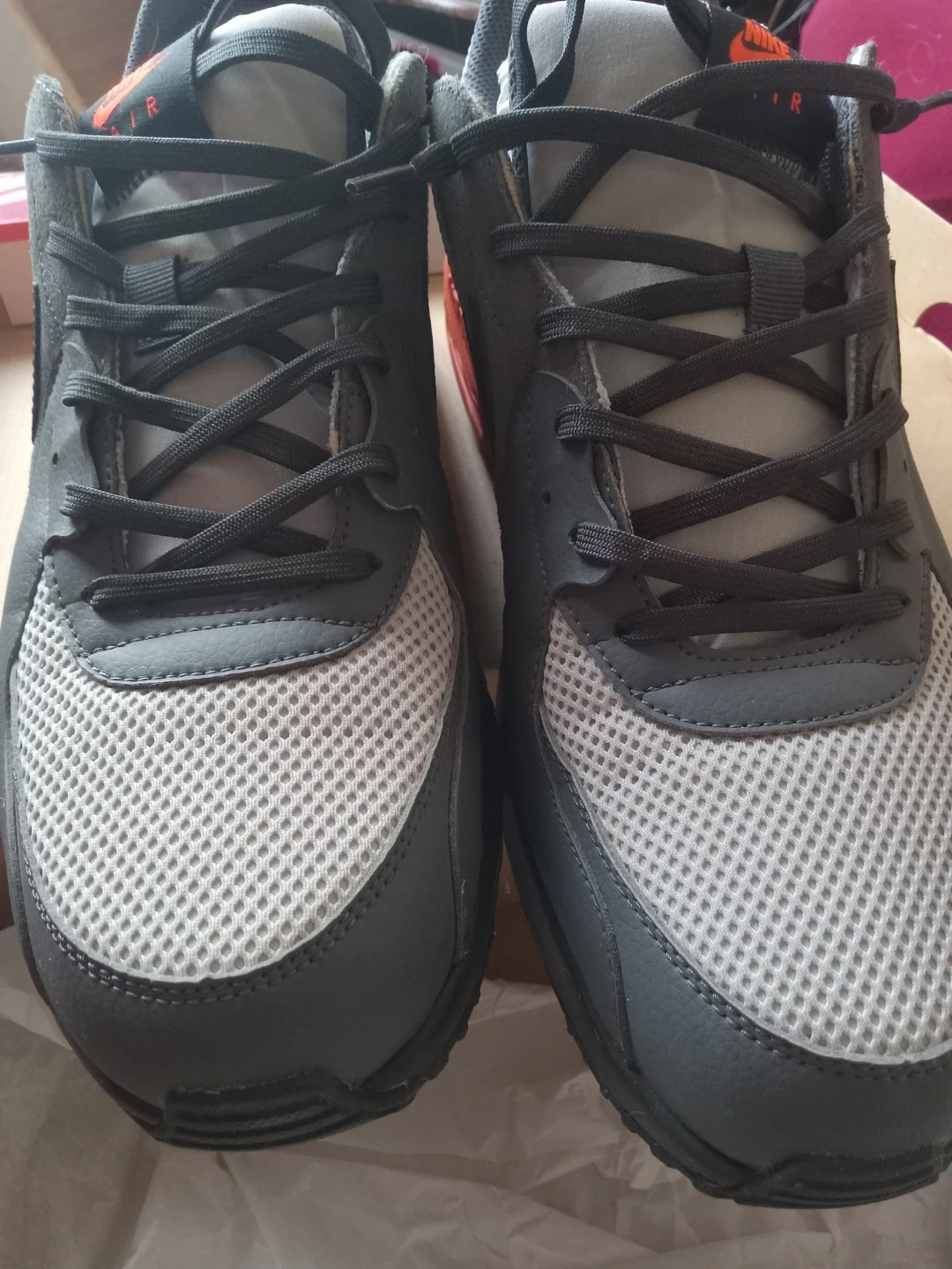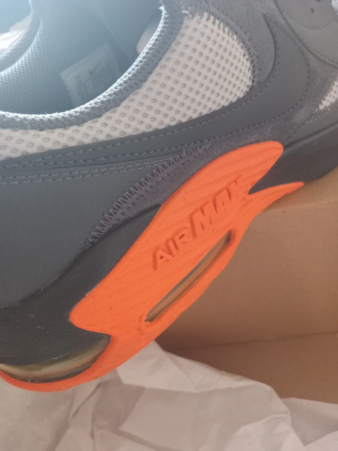 Selling a pair of Nike Air Max sneakers in grey and orange. They come with the original box, size 13