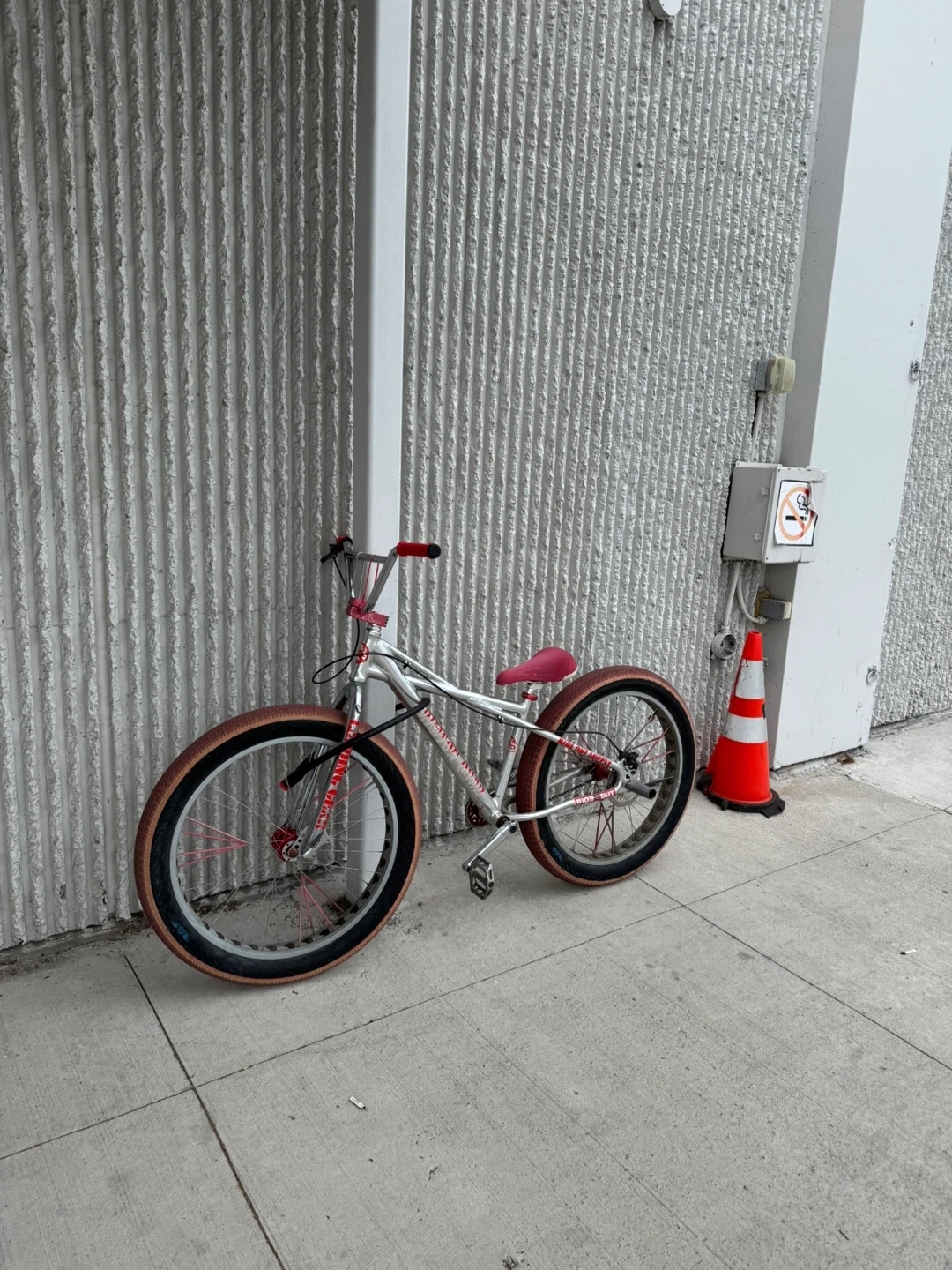 Selling a SE Bikes Big Ripper. It's in good condition and ready for a new owner! The bike features a silver frame with red accents, including the seat and handlebars. Perfect for cruising around town or hitting the bike park!