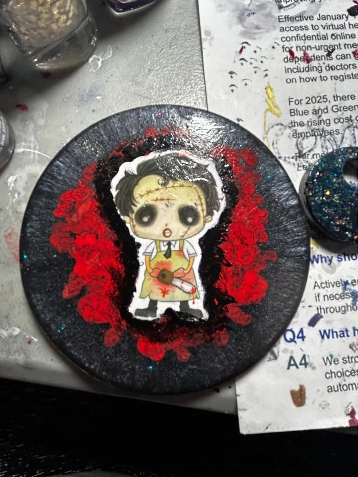 Resin coasters. Can custom make whatever you request. 4 pack for 25. To see more products go to Facebook group MNM’s peculiar designs.
