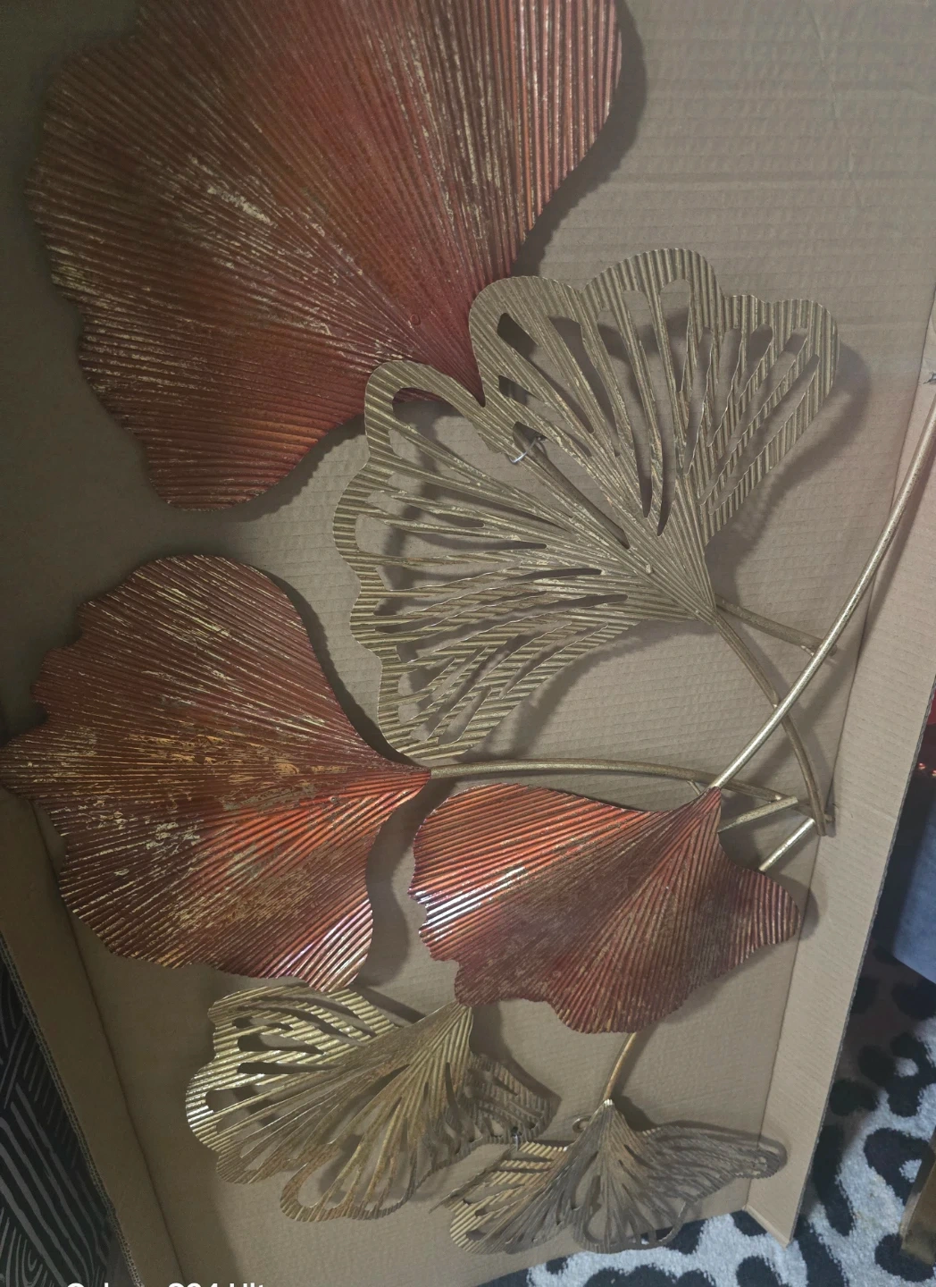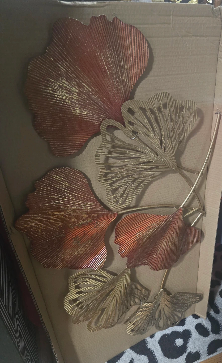 Selling a metal ginkgo leaf wall decor piece. It features a beautiful design with both copper and gold coloured leaves. This piece would make a lovely addition to any room!
