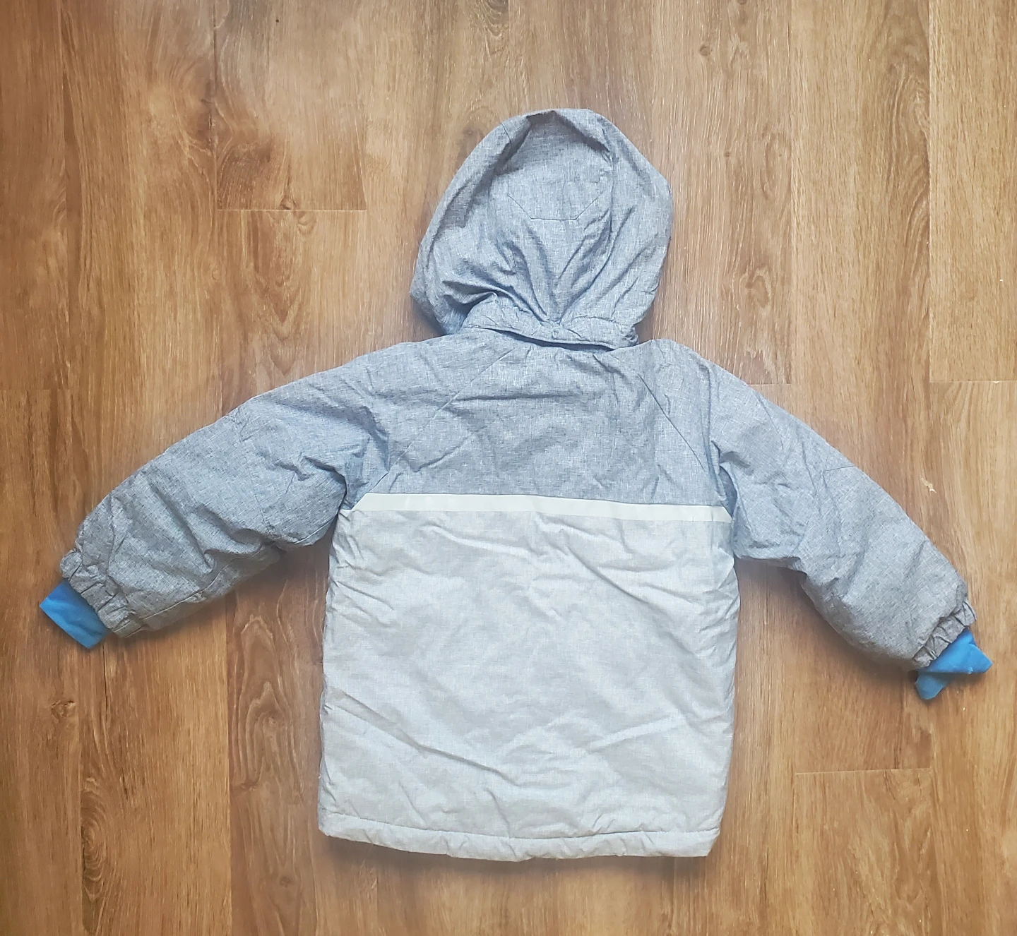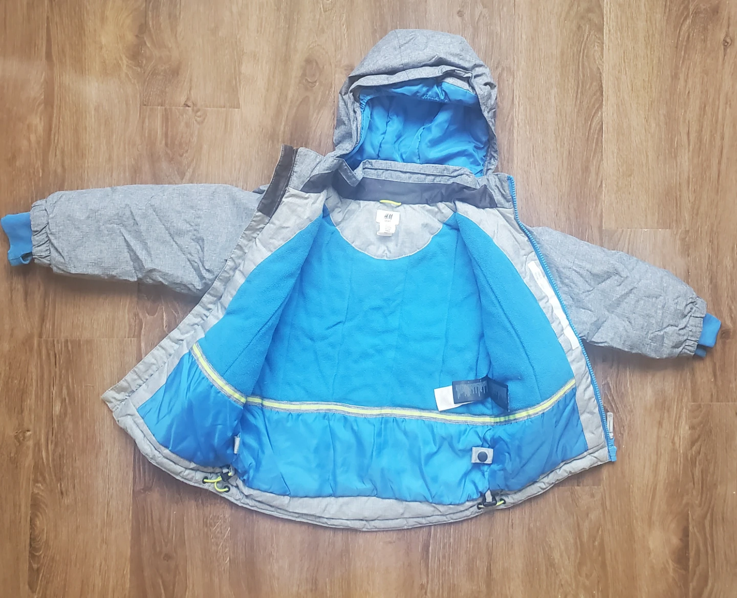 A cute H&M kids winter jacket. Removable hood. Adjust in the waist. Reflective lines in front and back.