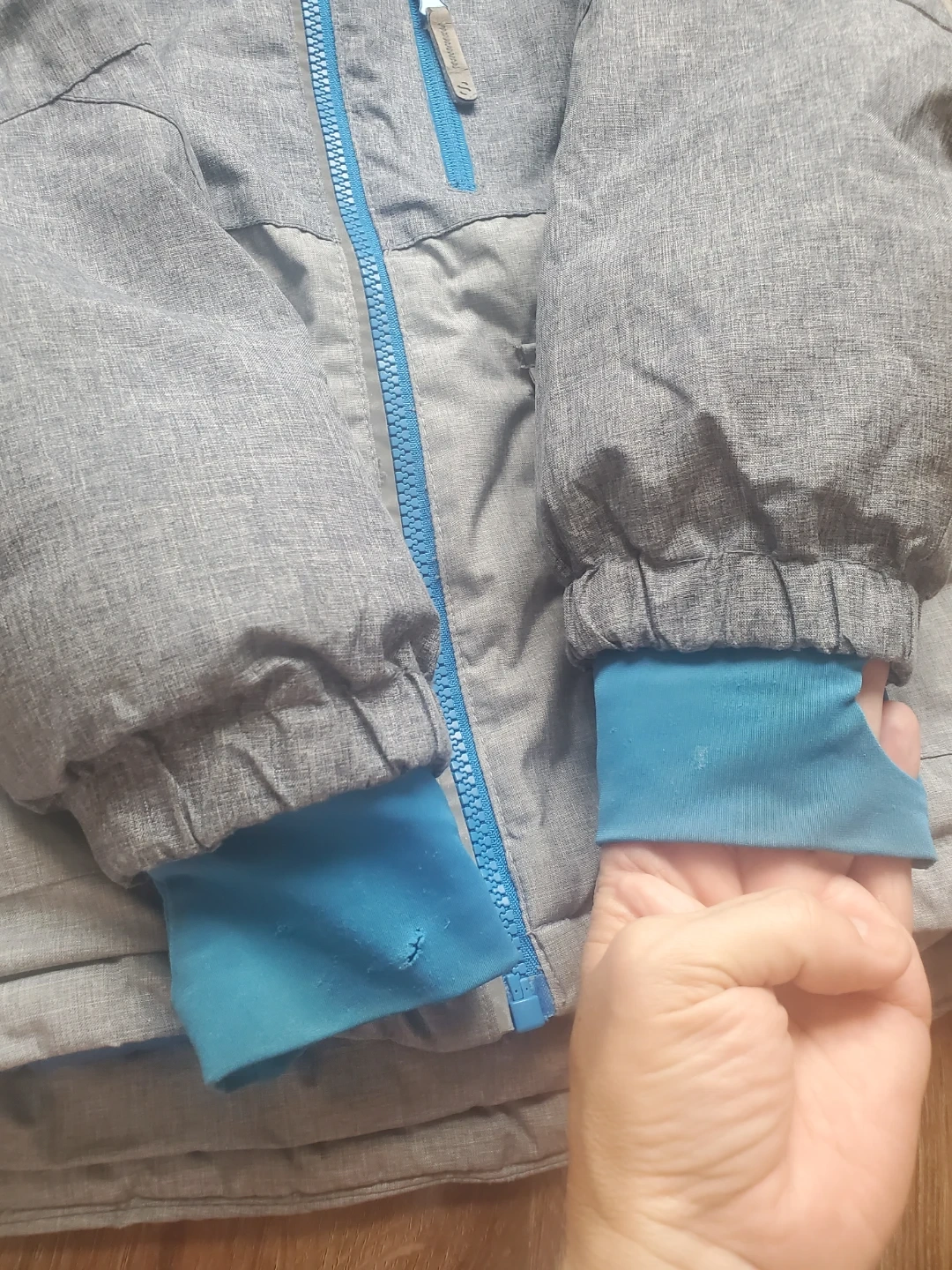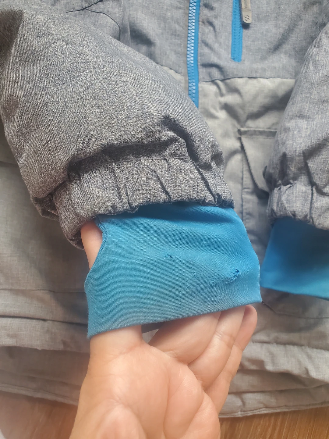 ***There's a some holes on the sleeve in the tumb holes of the cuffs (see photos).***