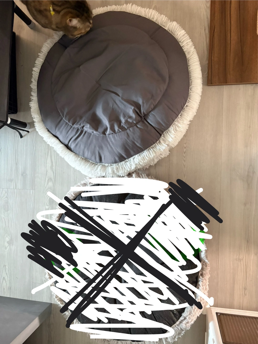 Selling a fluffy, round pet bed! It looks super comfy and would be a great place for your furry friend to relax