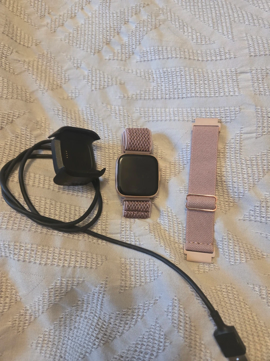 Selling my Fitbit Versa 2! It comes with the charger and two straps. It's in great condition and ready for a new owner