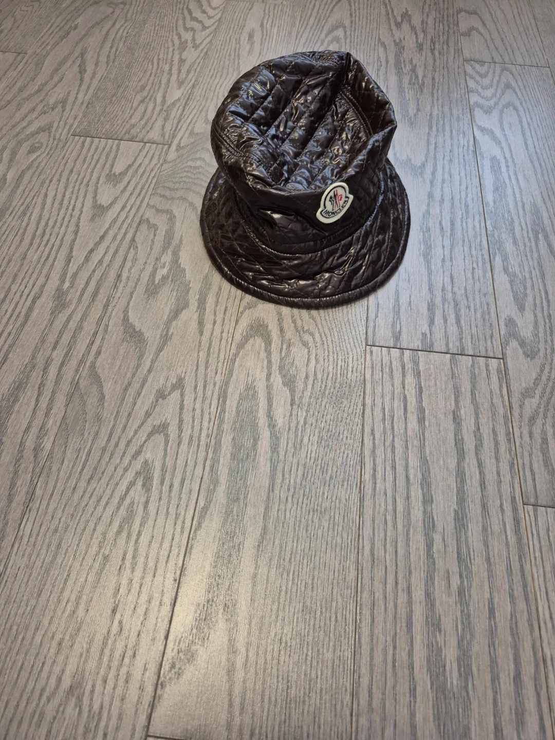 Here's a stylish Moncler size M quilted bucket hat in a lovely brown colour! It's lightly used and ready for a new home!