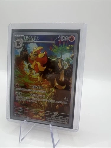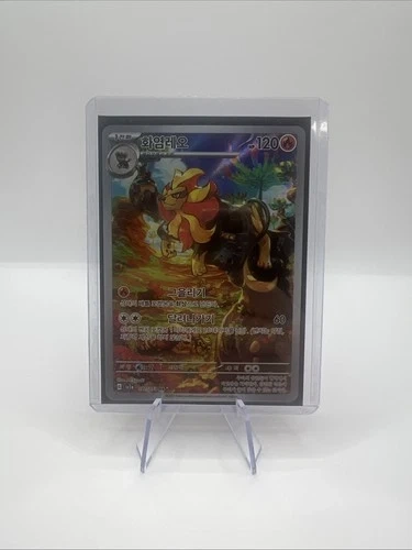 Pyroar AR 077/073 card from the Scarlet & Violet set. A must-have for collectors and enthusiasts alike, this Stage 1 Pokémon card features the majestic Lion-type, Pyroar, ready to roar into battle with its 120 HP. The card boasts a captivating Holo finish. Crafted with quality paper material and manufactured in the Republic of Korea, this card is presented in the Korean language. Suitable for those aged 6 and above.
