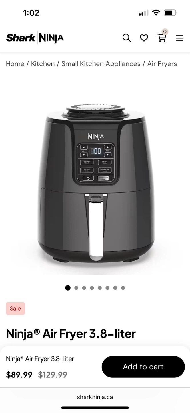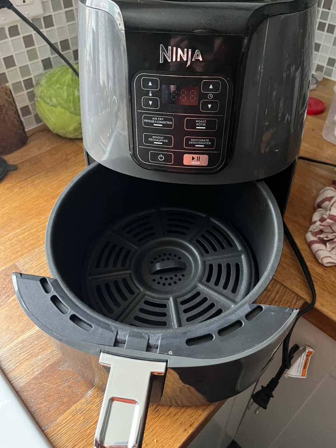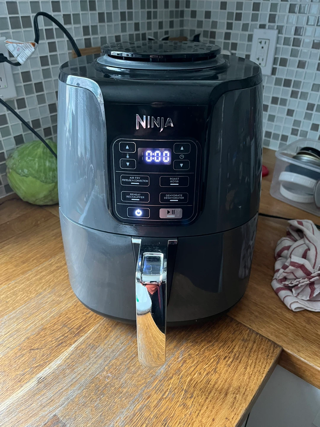 Selling a Ninja Air Fryer with a 3.8-liter capacity, charcoal grey colour. It's in great shape, only used twice (vegetarian household, no meat used in it). Bought for $130. Did not registered it.