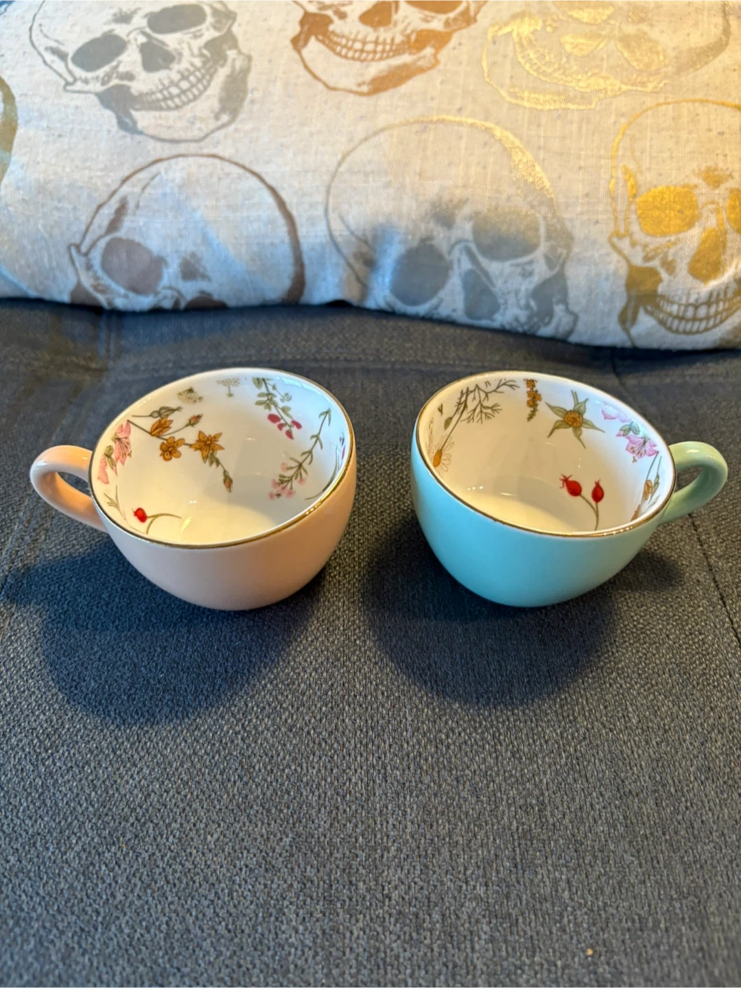 2 beautiful flowered espresso cups, one pink, one turquoise. No chips, cracks or stains. Like new. Pickup near Sherbourne and Adelaide Street East or sometimes at some TTC stations. Thanks!