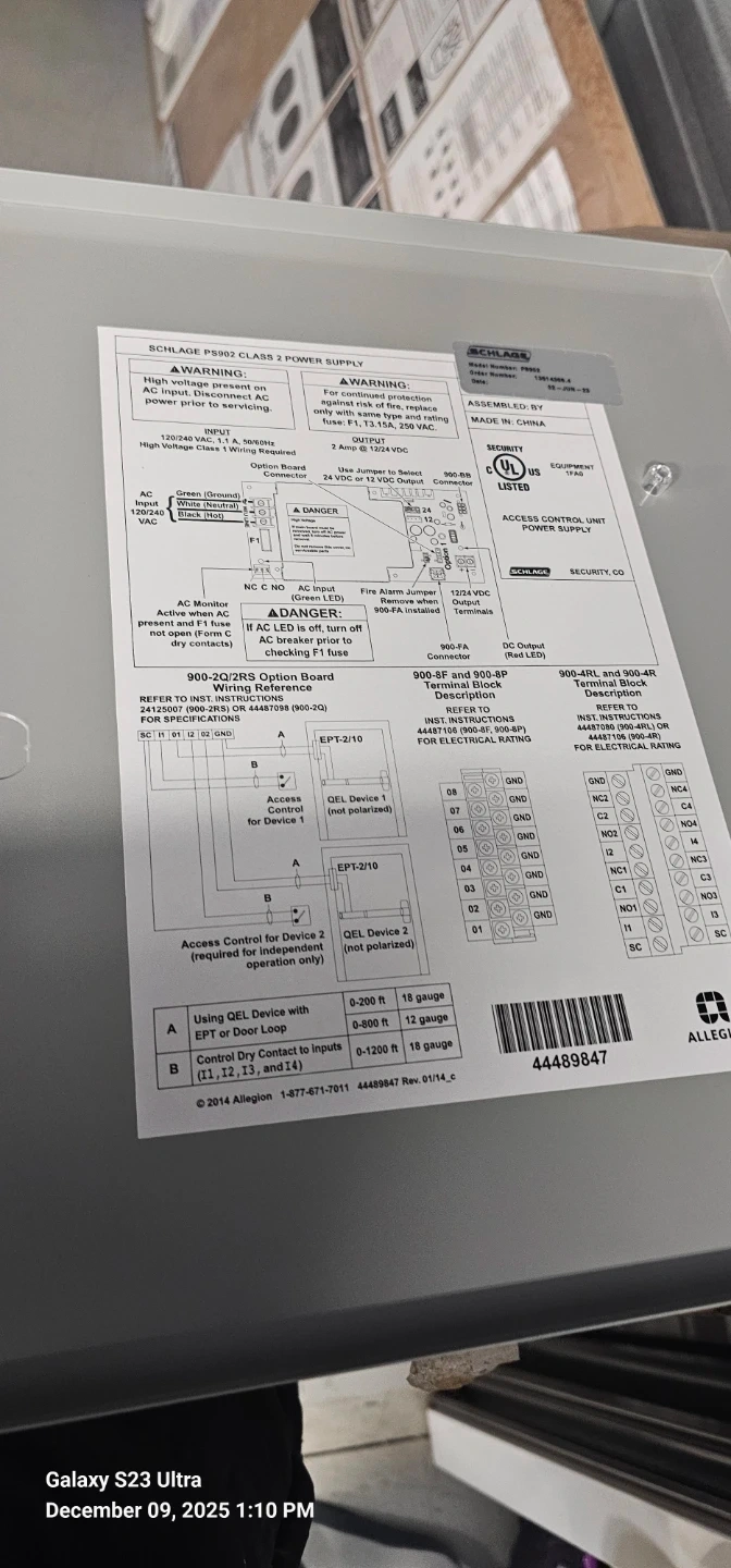 Selling a new Schlage PS902 Class 2 Power Supply! It comes in its original box and includes all components. This is a high-voltage power supply designed for access control units.