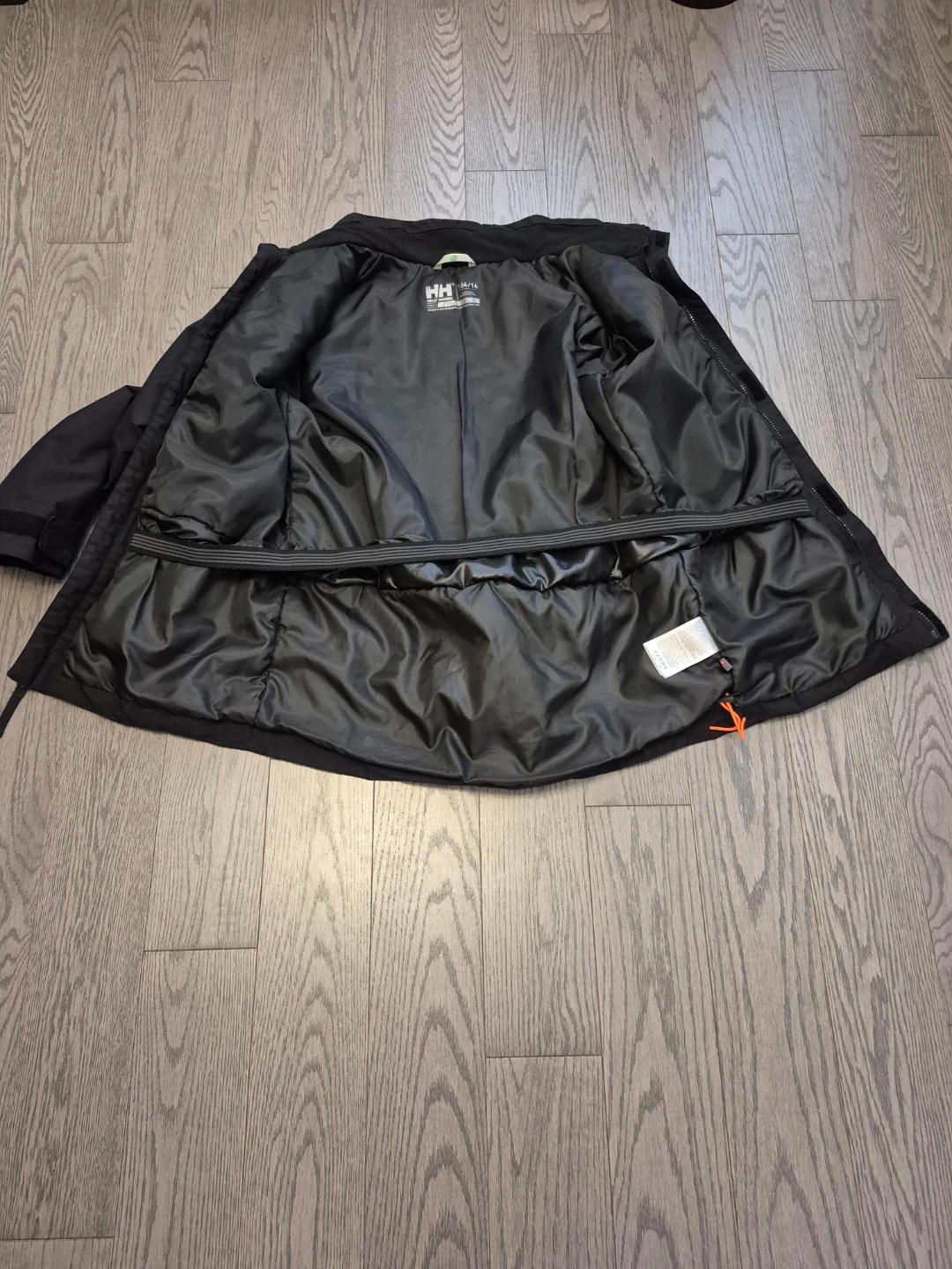 Selling a Helly Hansen black rain jacket in size 164/14. It's in great condition and ready for those rainy days!