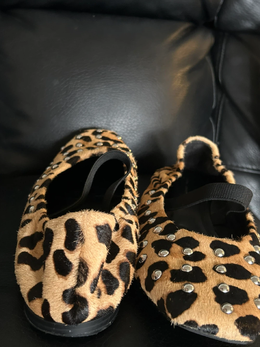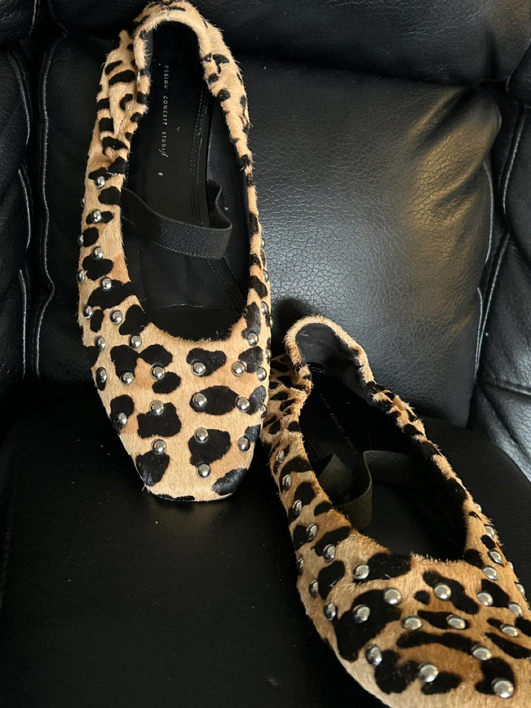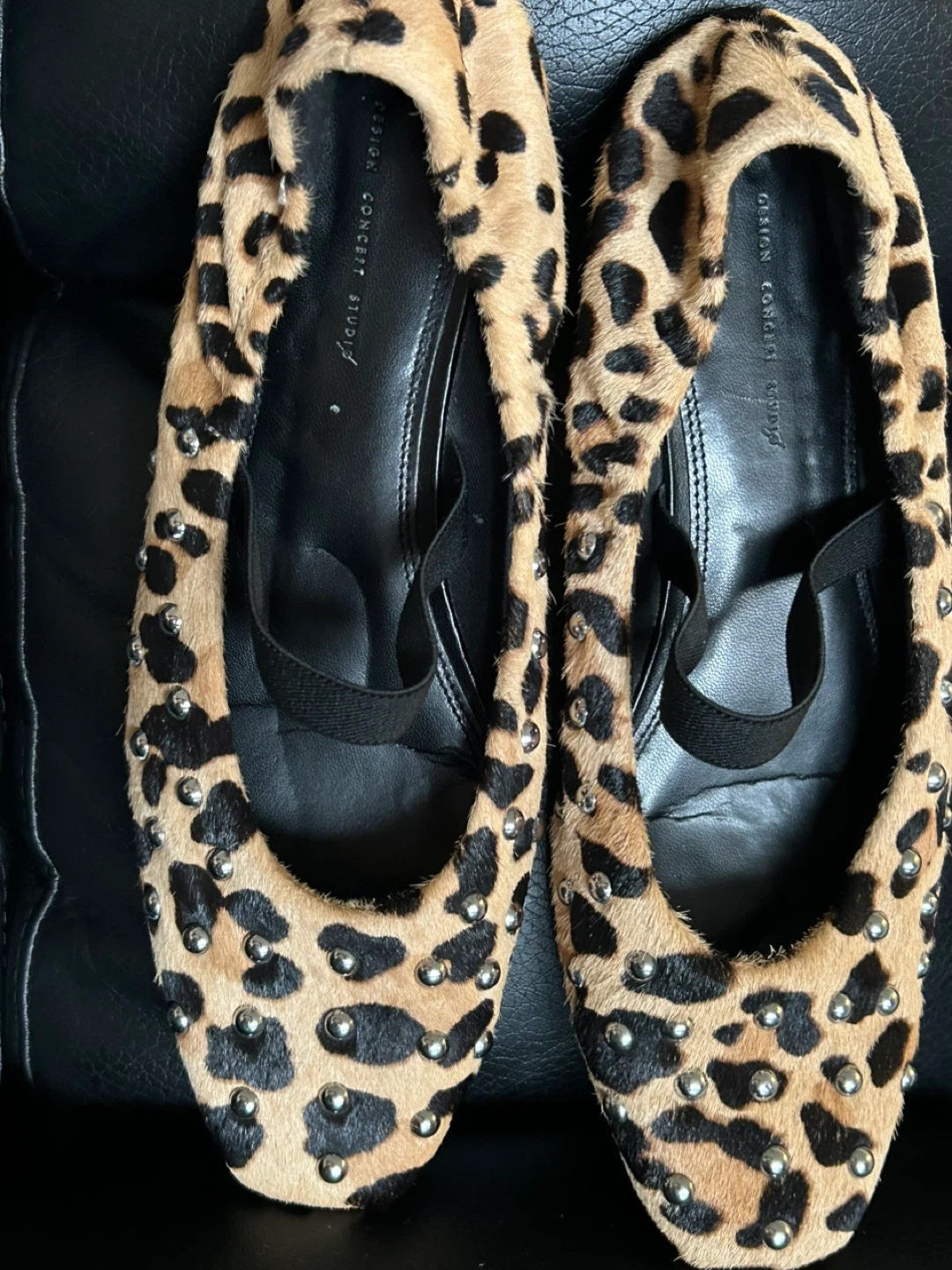 Cute pair of Design Concept Studio studded flats with a fun leopard print! These are perfect for adding a little flair to any outfit size 10. I invite you to view my other items; if you are interested in any of them, I will give you a better price.