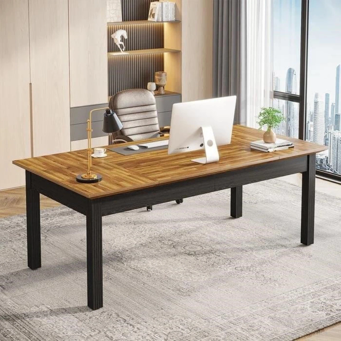 Sturdy Construction - This home office desk built with thick MDF and solid wood legs is durable, sturdy, and has a high weight capacity. Adjustable footpads keep it from wobbling. Elegant Design - A dark, textured wood finish and sturdy white legs give this 62" computer desk a sleek, professional look. Grooves on the legs add sophistication. Ample Work Area - With generous dimensions of 62.6"L x 31.1"W x 30.3"H, this desk provides plenty of workspace and legroom for folders, files, and more. Practical & Flexible - Suitable for office or training areas, the desk can function as a computer desk, executive desk, conference table, or even a dining or kitchen table in your home. Features: Metal Legs Brand: Tribesigns Assembled Product Weight: 62.83 lb Material: Engineered Wood, Metal Assembly Required: Yes Dimensions (L W H) 63.00 in 31.50 in 29.50 in