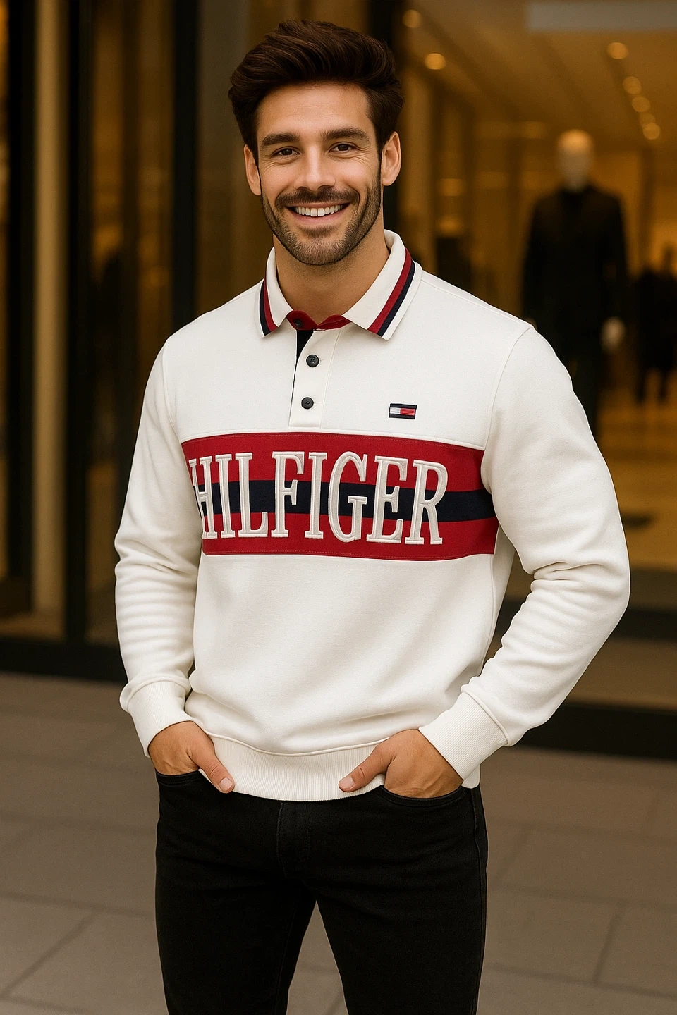 Here's a stylish Tommy Hilfiger SLIM FIT long sleeve polo shirt! It features the classic Hilfiger logo in the neck and logo across the chest. This shirt is perfect for a casual yet put-together look. M, L, XL, XXL