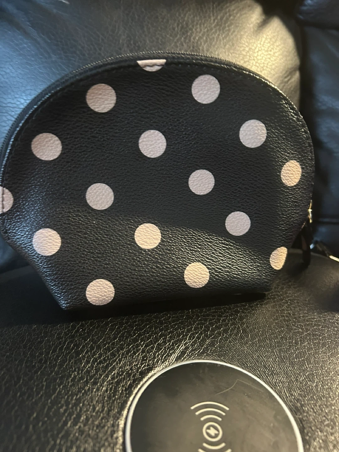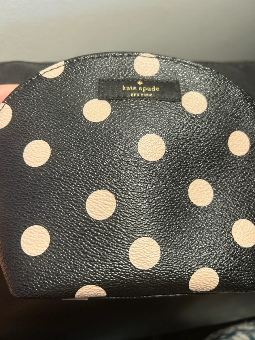Selling a Kate Spade cosmetic bag in a cute polka dot pattern! It's in great condition and perfect for storing your makeup or toiletries. The interior is lined and has a small pocket for organization. 20 cm x 14 cm