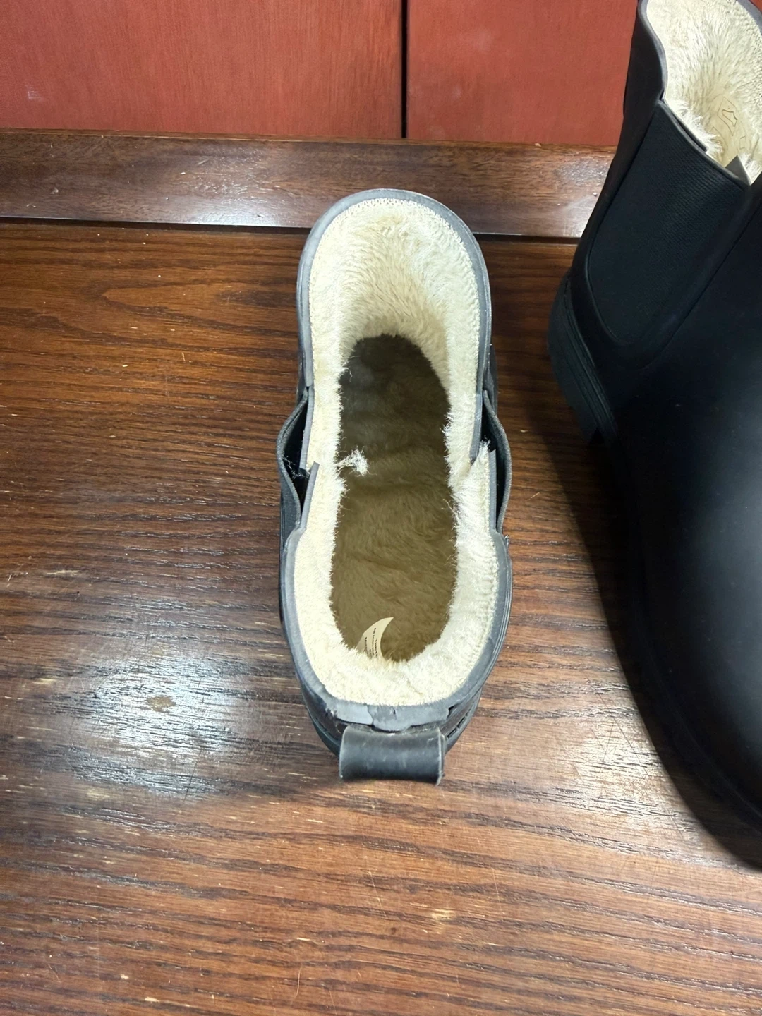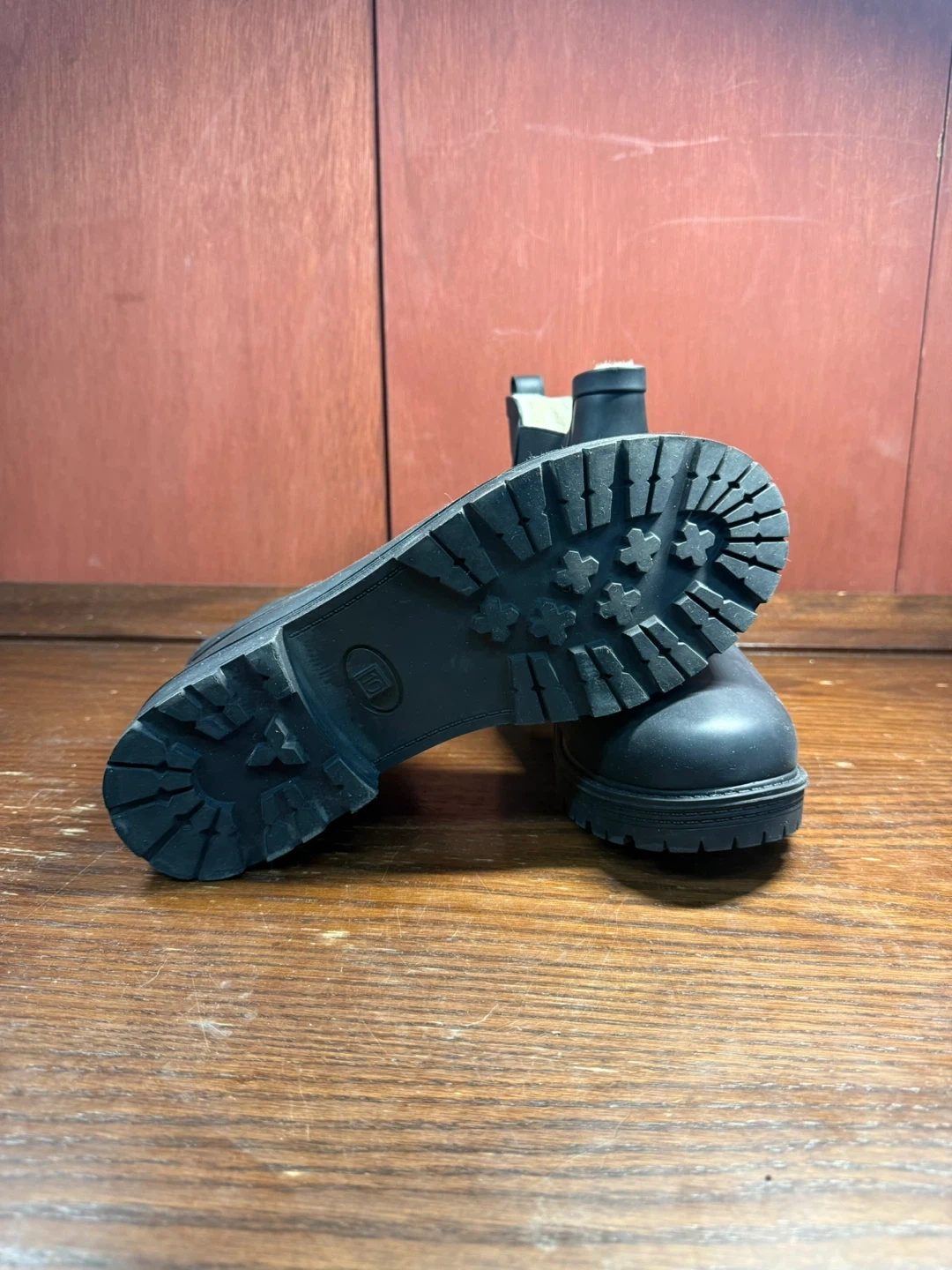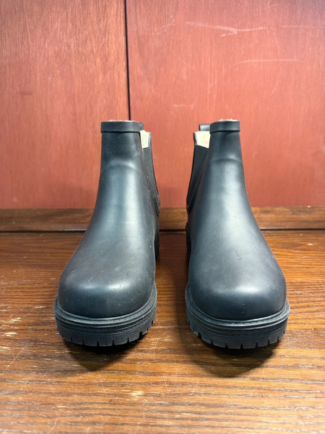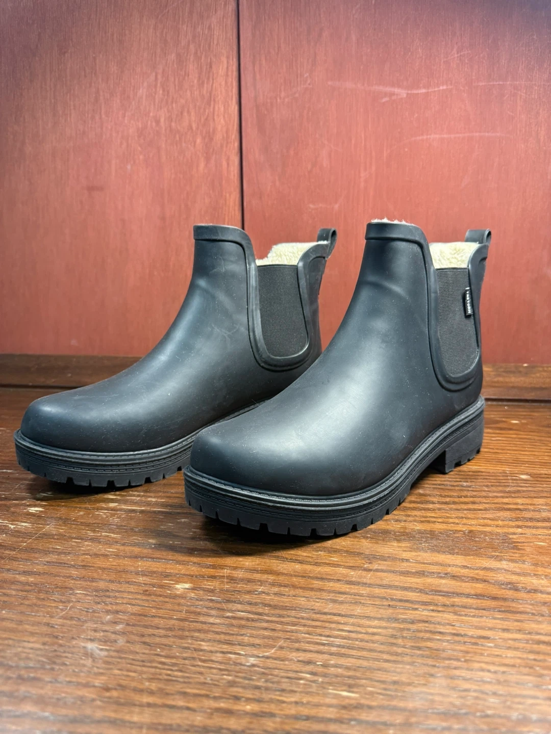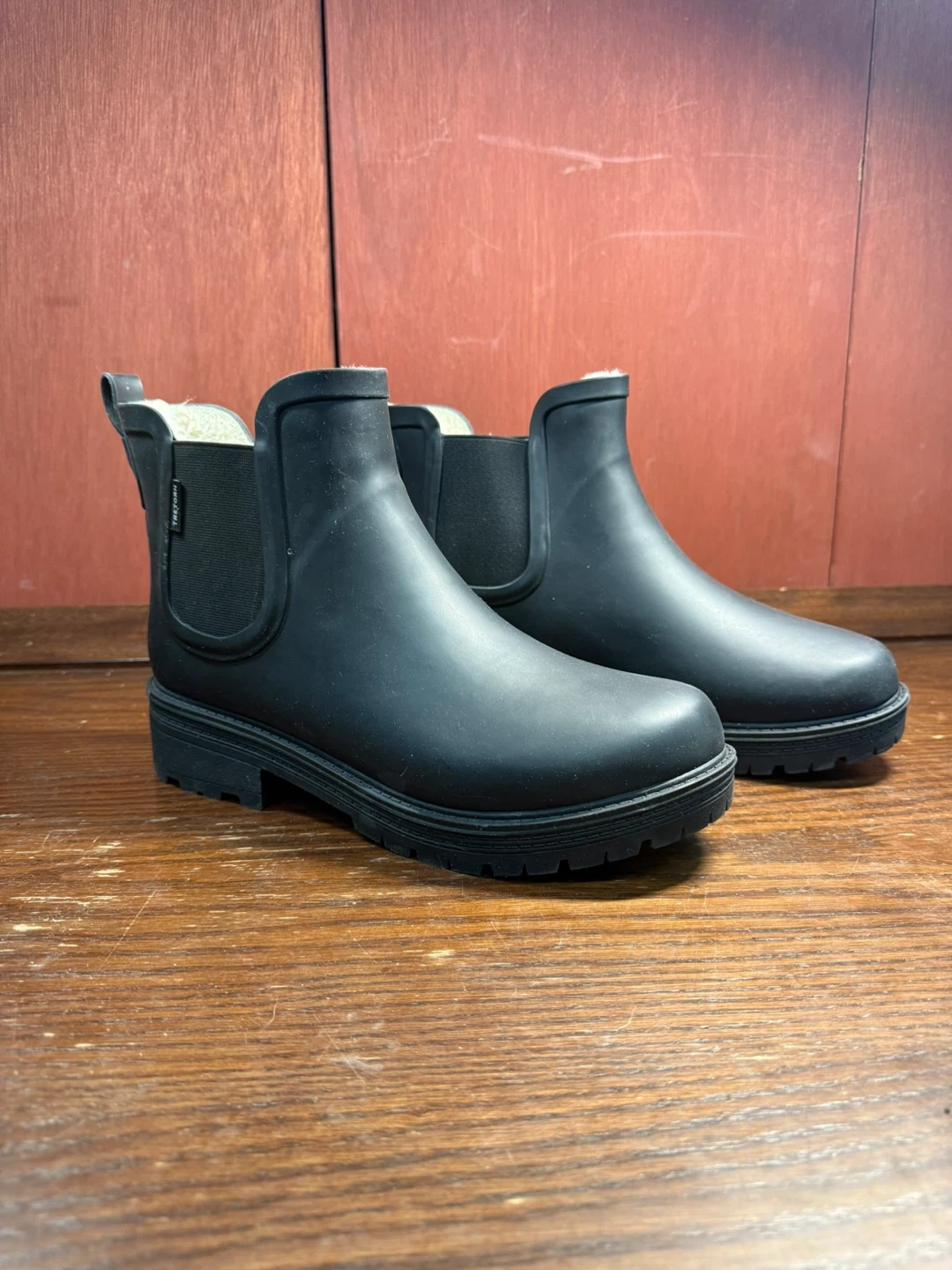 Step into style and comfort with these Tretorn women's black Chelsea boots, size 10 US, featuring a cozy faux-fur lining. These used boots are perfect for adding a touch of warmth and sophistication to your fall and winter outfits, while ensuring your feet stay snug and stylish. They are in good condition, with only minor signs of wear.