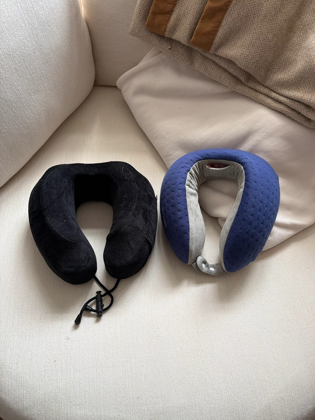 Giving away two travel neck pillows. One is black and the other is blue. They are in good condition and ready for your next trip!