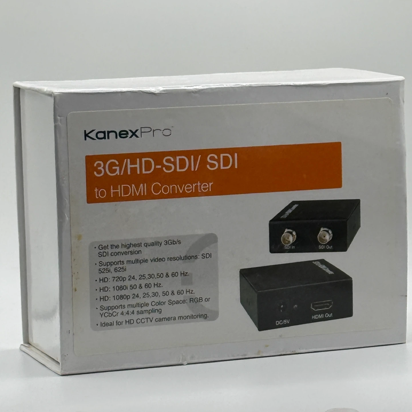 Selling a KanexPro 3G/HD-SDI to HDMI Converter. It's in great condition and comes with the box. It supports multiple video resolutions, including 720p and 1080i. Ideal for HD CCTV camera monitoring
