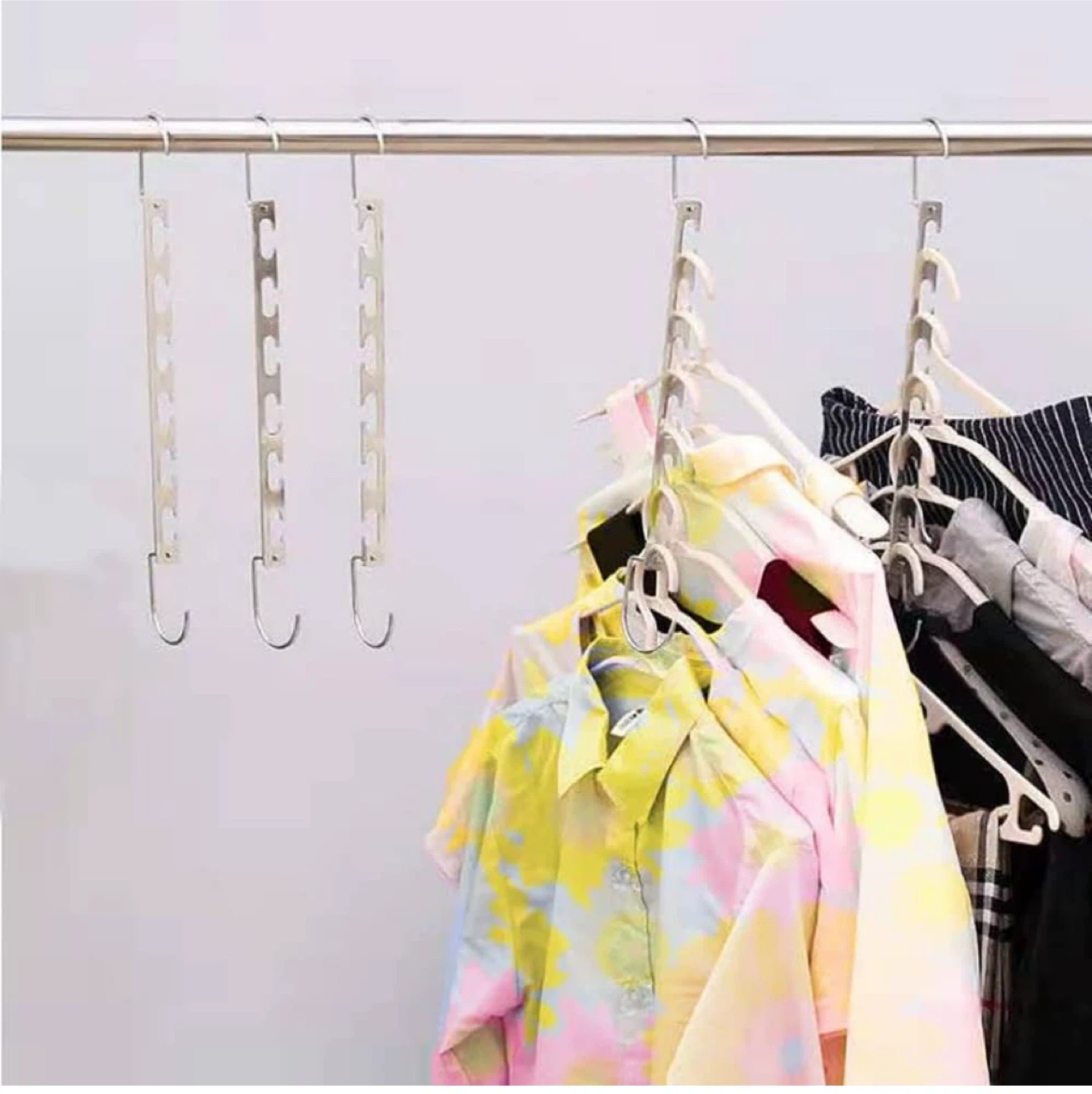 Declutter your closet with these space-saving multi-clothes hangers! They're designed to help you maximize your closet space and keep your clothes organized. Great for apartments or anyone looking to tidy up their wardrobe