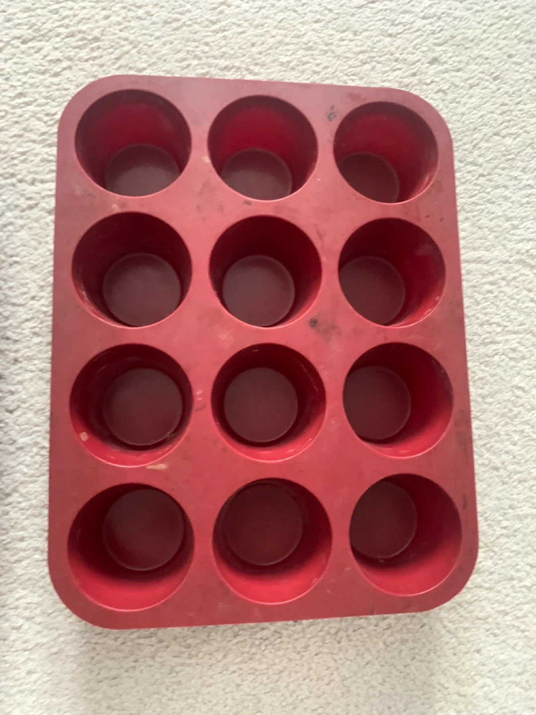 Selling a set of red silicone muffin tins! These are perfect for baking muffins, cupcakes, or even mini quiches. They're easy to clean and oven-safe. 2 x12 , 1x6