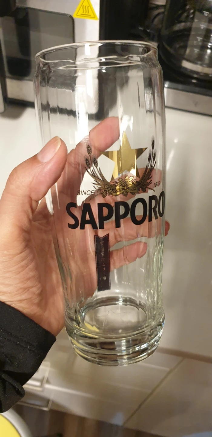 Selling a set of two Sapporo beer glasses. They feature the Sapporo logo with the gold star and wheat design. Perfect for enjoying your favourite Sapporo beer or any beverage!