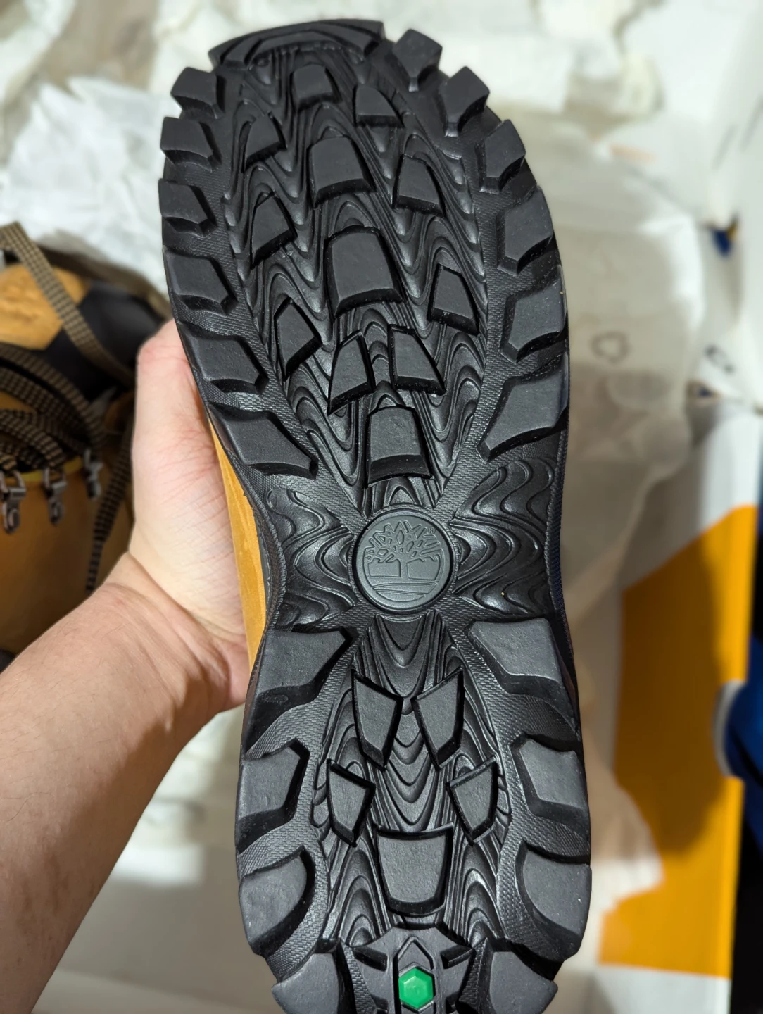 Rubber lug outsole is made with 34% recycled rubber and offers durability and traction on any surface