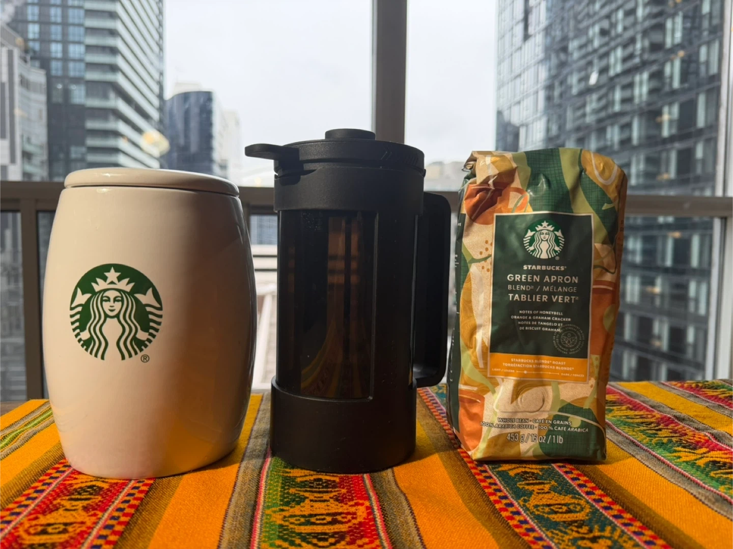 Starbucks Coffee Set: Green Apron Blend, Container, Press