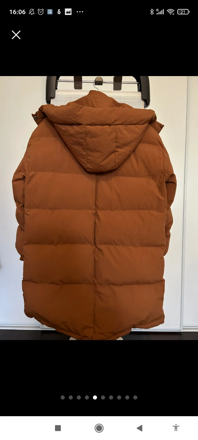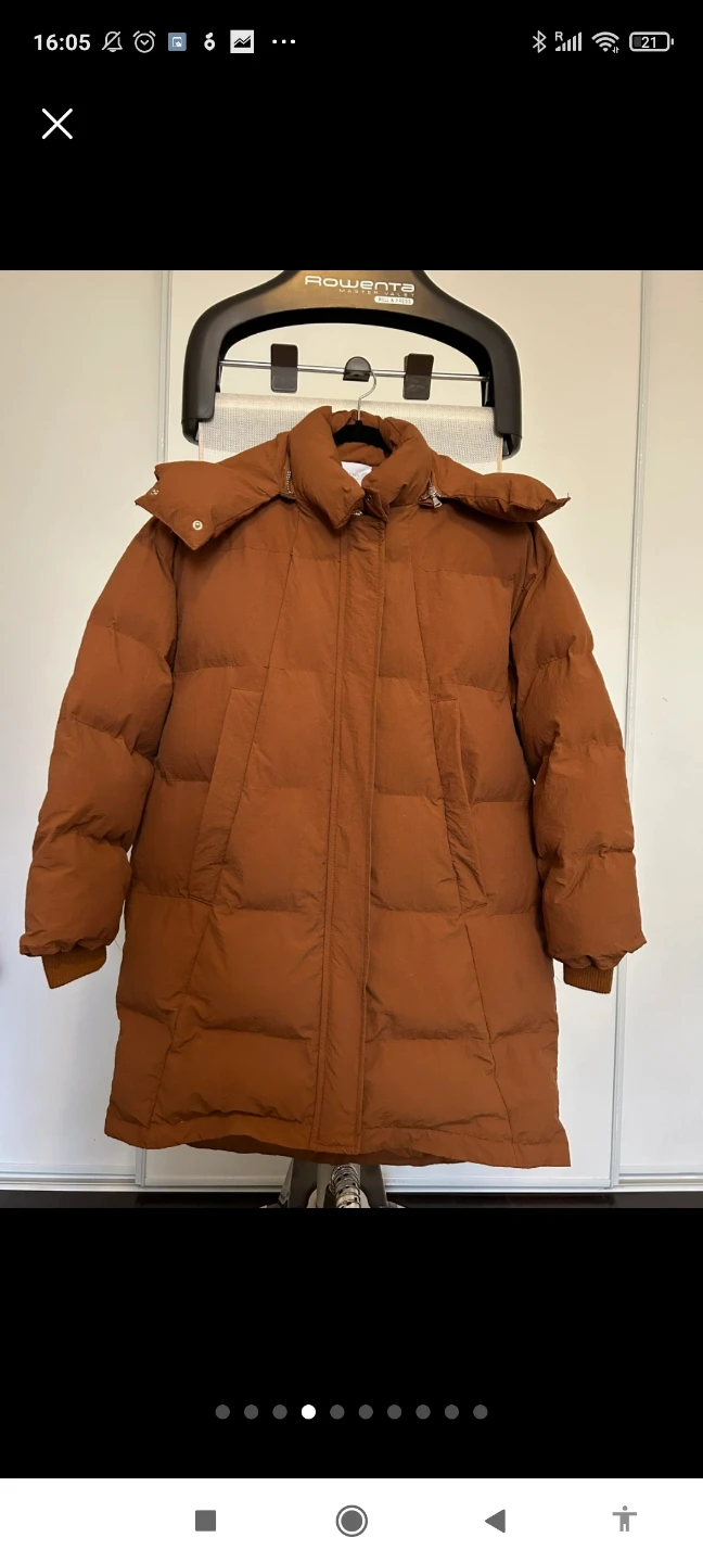 Here's a stylish brown puffer jacket with a hood, perfect for those chilly days! It looks great and is sure to keep you warm and cozy.