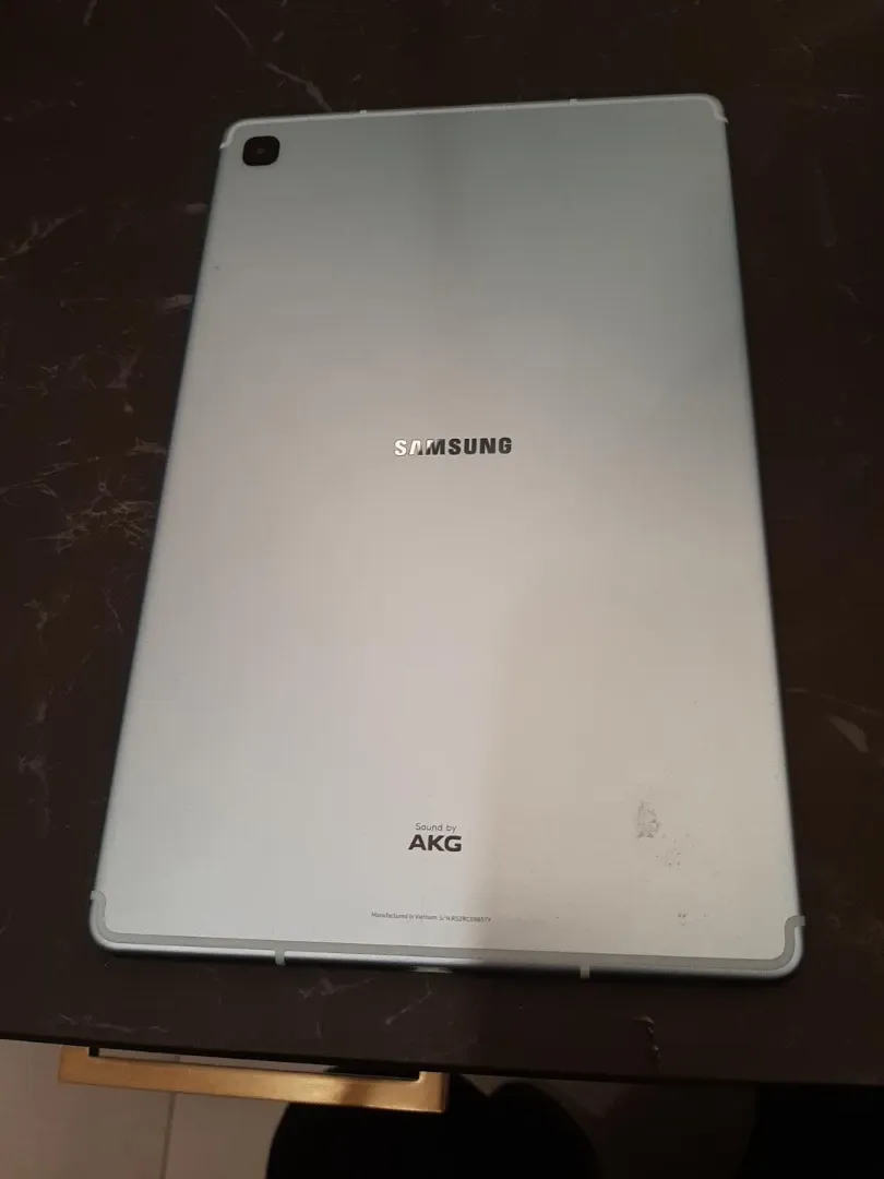 Selling a Samsung Galaxy Tab S6 Lite in Blue. It's in good condition and sounds great with AKG sound! No Charging cable little scuffs