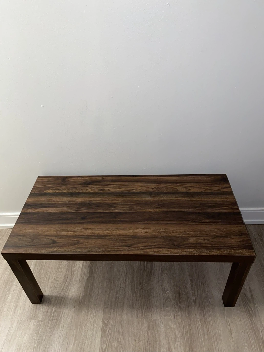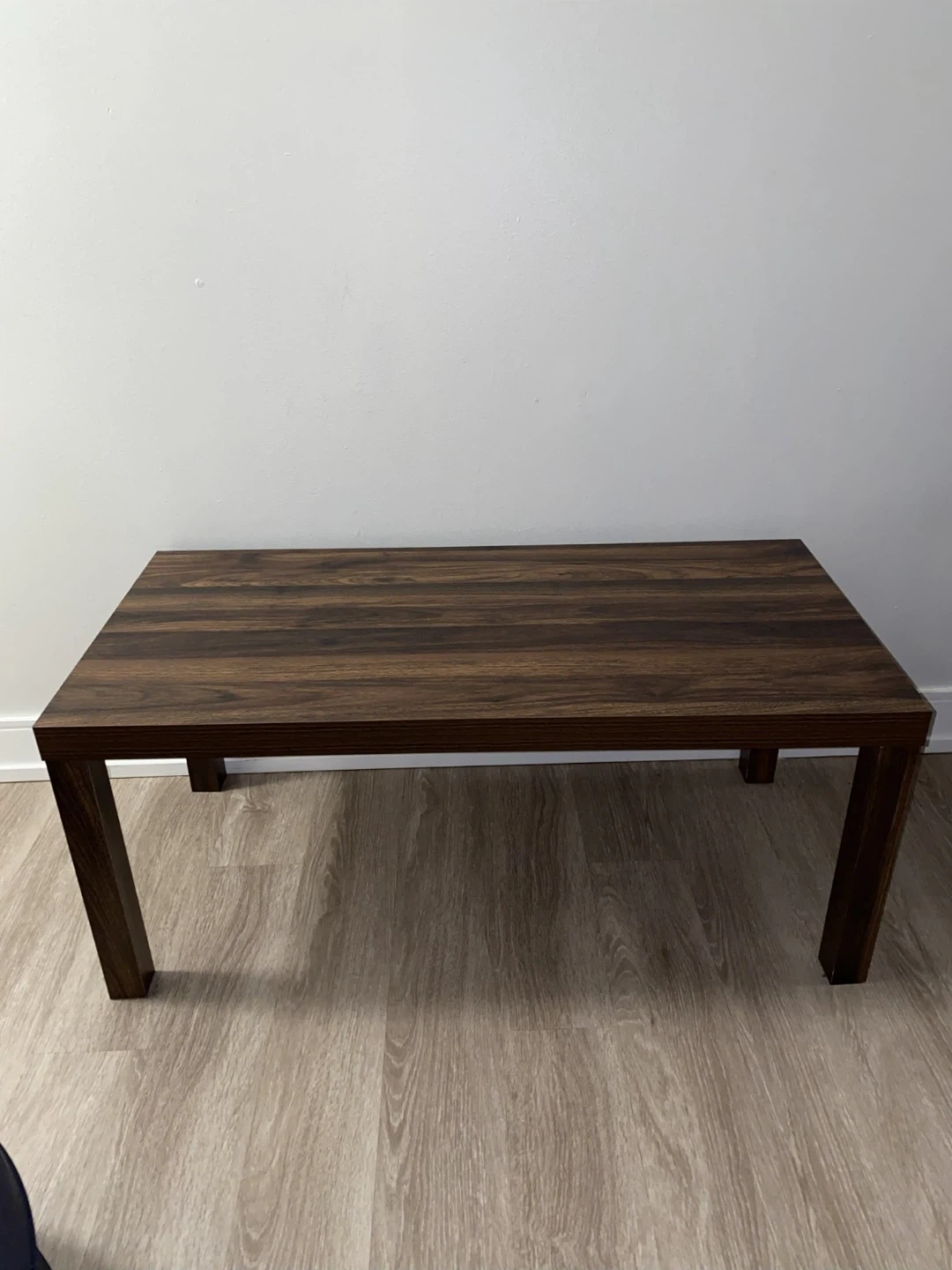 Sturdy rectangular table in a warm walnut wood finish