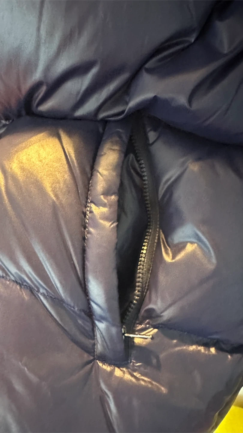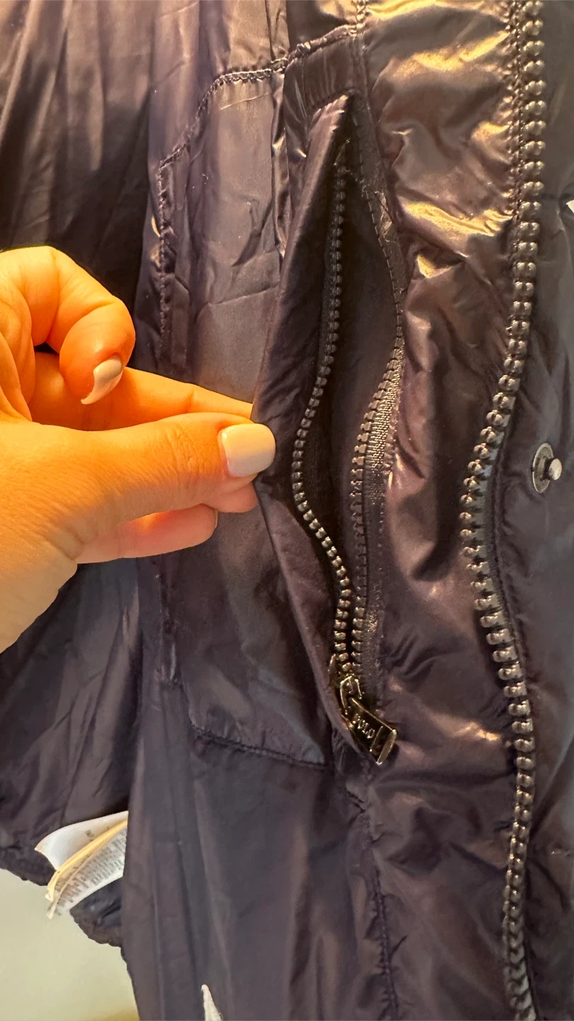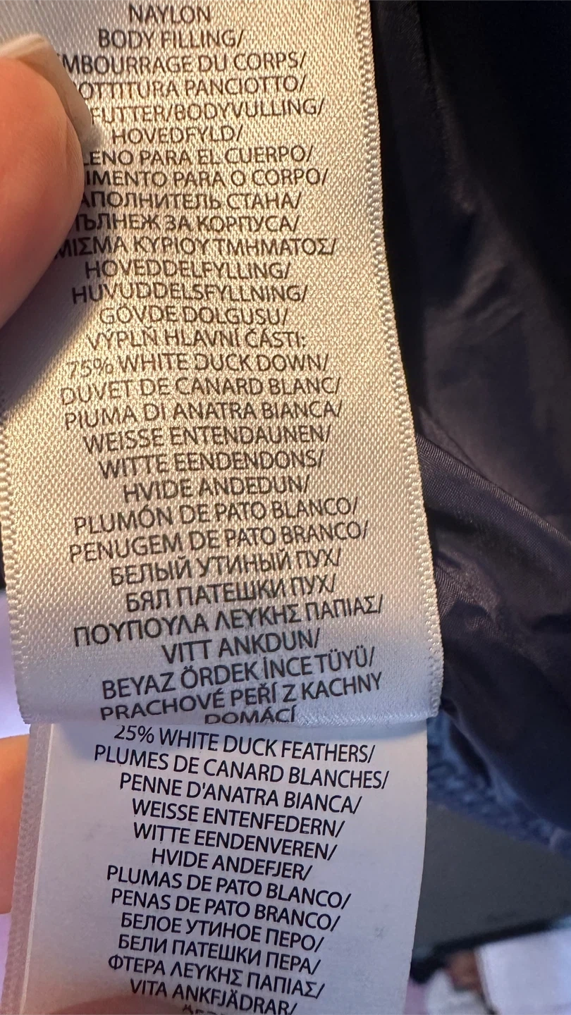 It's a stylish and warm jacket, perfect for fall and winter cold weather. The filling is 75% white duck down and 25% white duck feathers.
