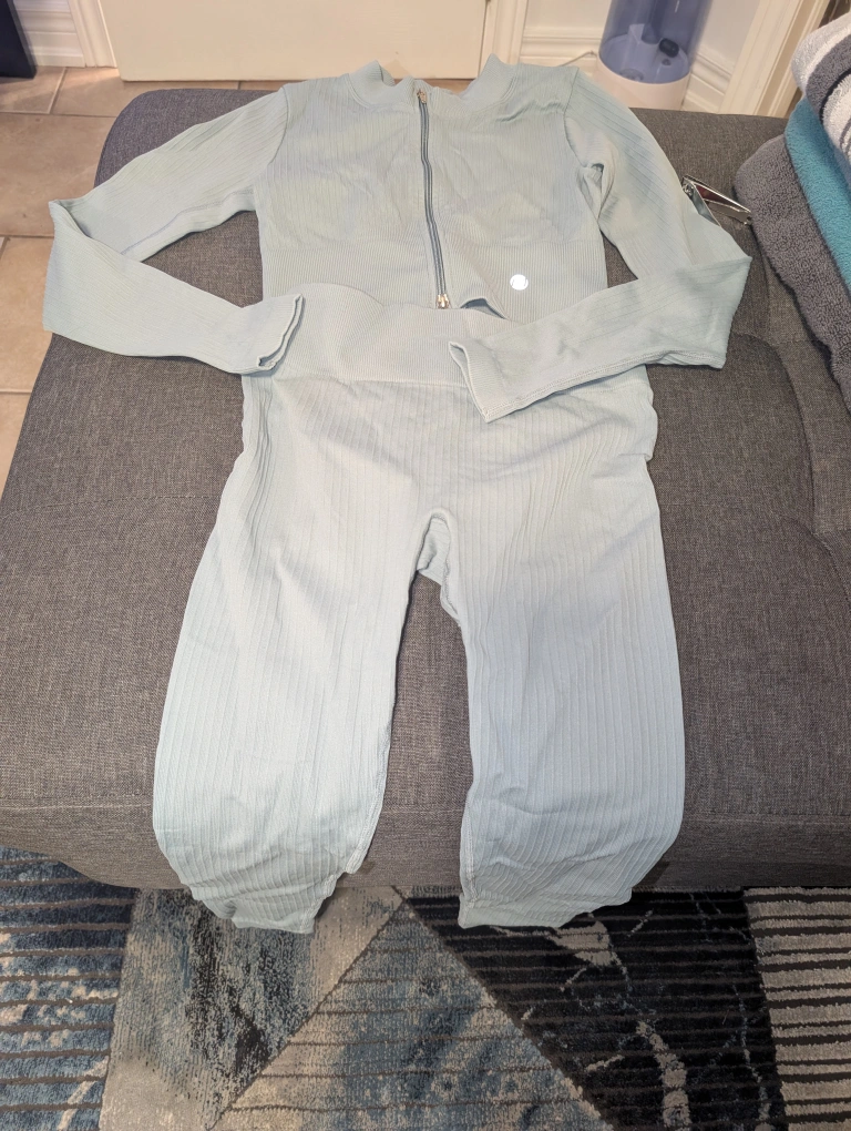 Selling a seamless set in mint. It includes a long sleeve top and leggings. Great for workouts or lounging!