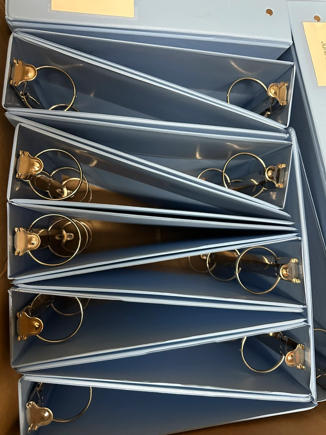 Selling a Grand&Toy 2" Economy Round Ring Binder in a light blue colour. The pictures seem to have made the colour lighter than it is, they are definitely more blue.